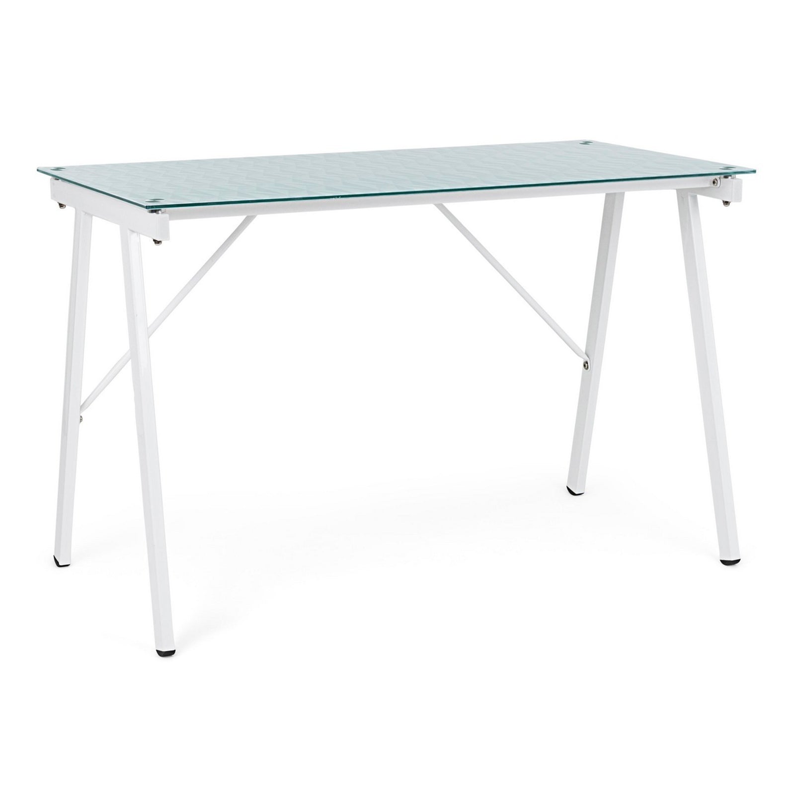 Bureau "Archimède" avec structure en acier, plateau en verre trempé, 113 x 58 cm