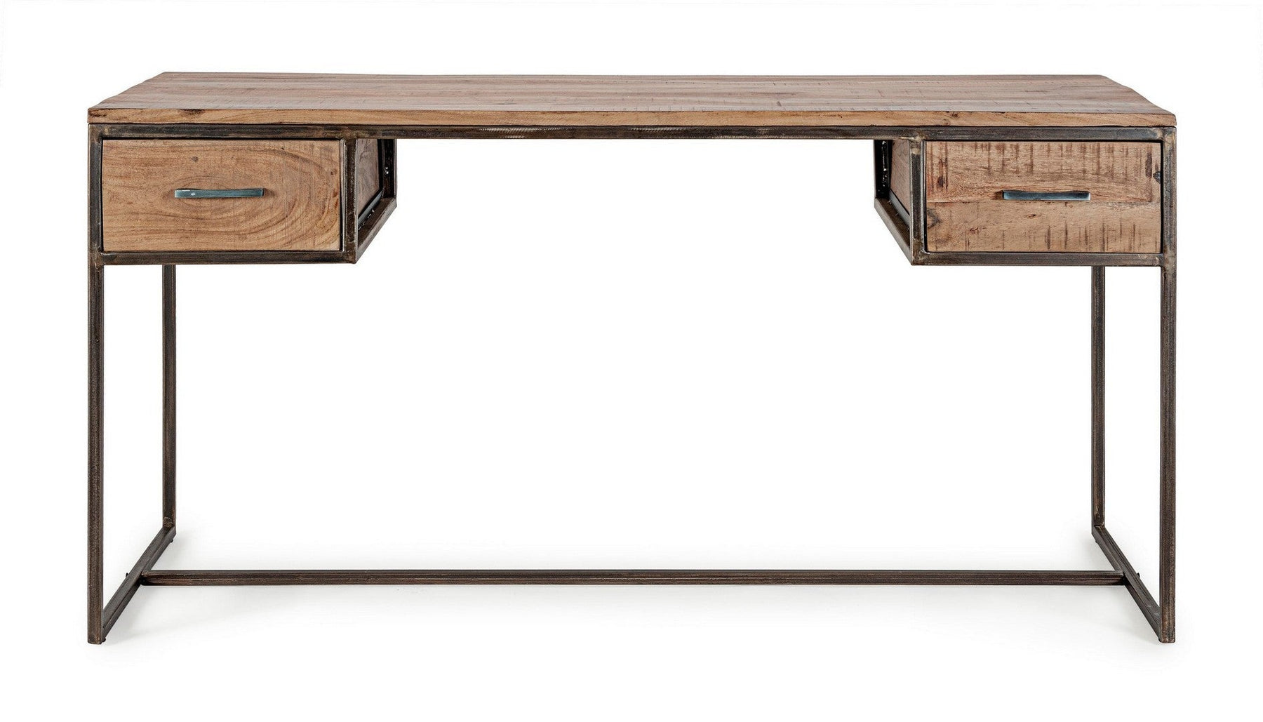 Bureau "Elmer" avec 2 tiroirs, structure en bois d'acacia, style moderne, 150x60x77h