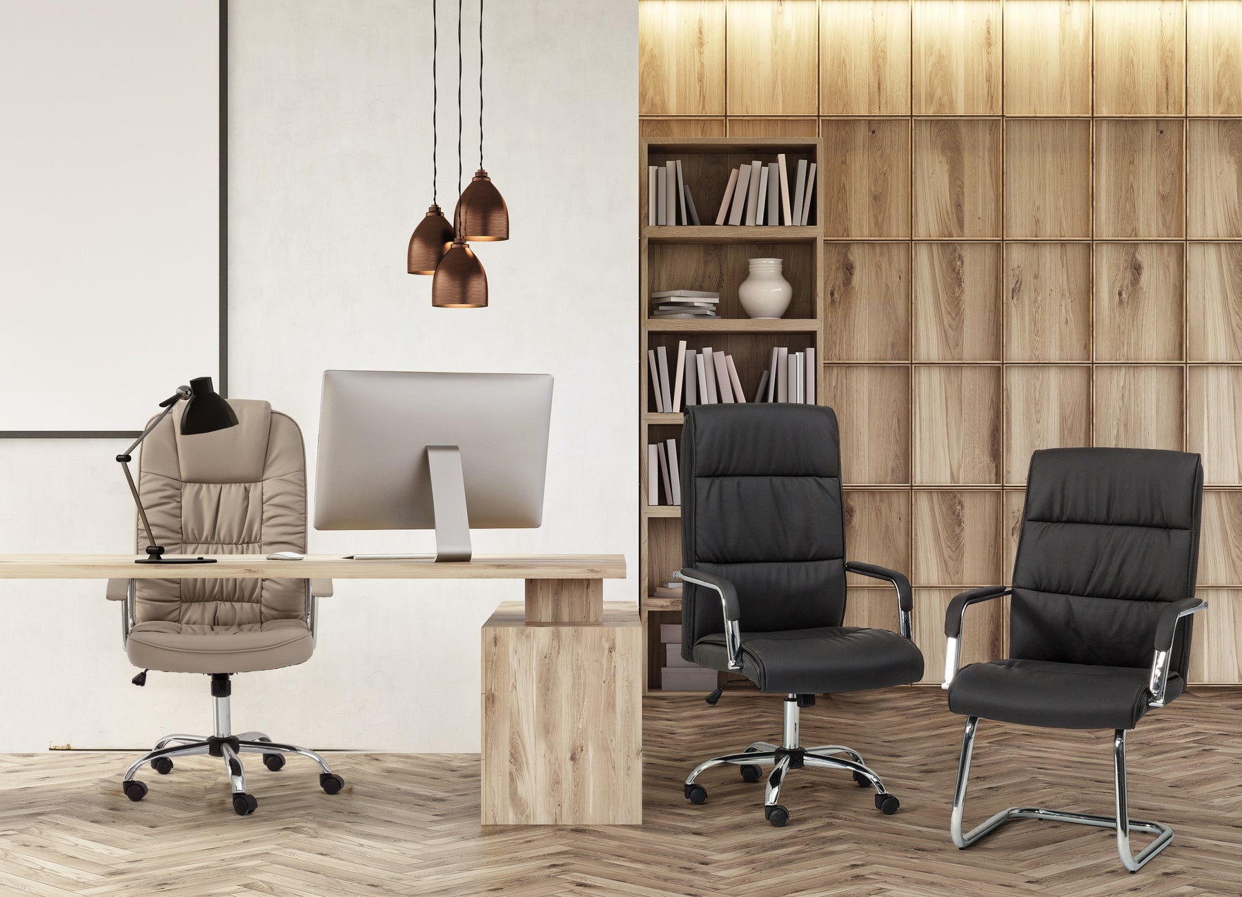 La chaise de bureau Queensland il est réalisé avec un socle en métal de 60 cm. Et siège rembourré et dossier haut dans cuir écologique .