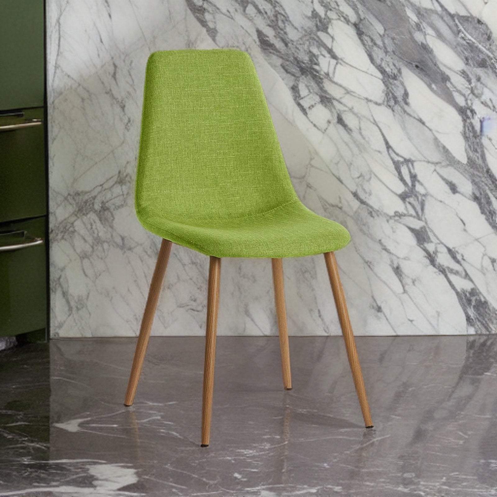 Chaise "Dama" en tissu vert pieds métal h 86 cm mobilier moderne