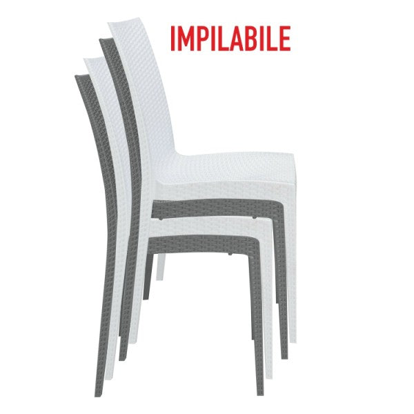 Prix régulier €49,90 Prix réduit €41,90Chaise modèle Bistrot empilable en rotin, pour usage intérieur et extérieur pour bars, restaurants, jardins, cuisines, pubs, pizzerias, excellent rapport qualité-prix.