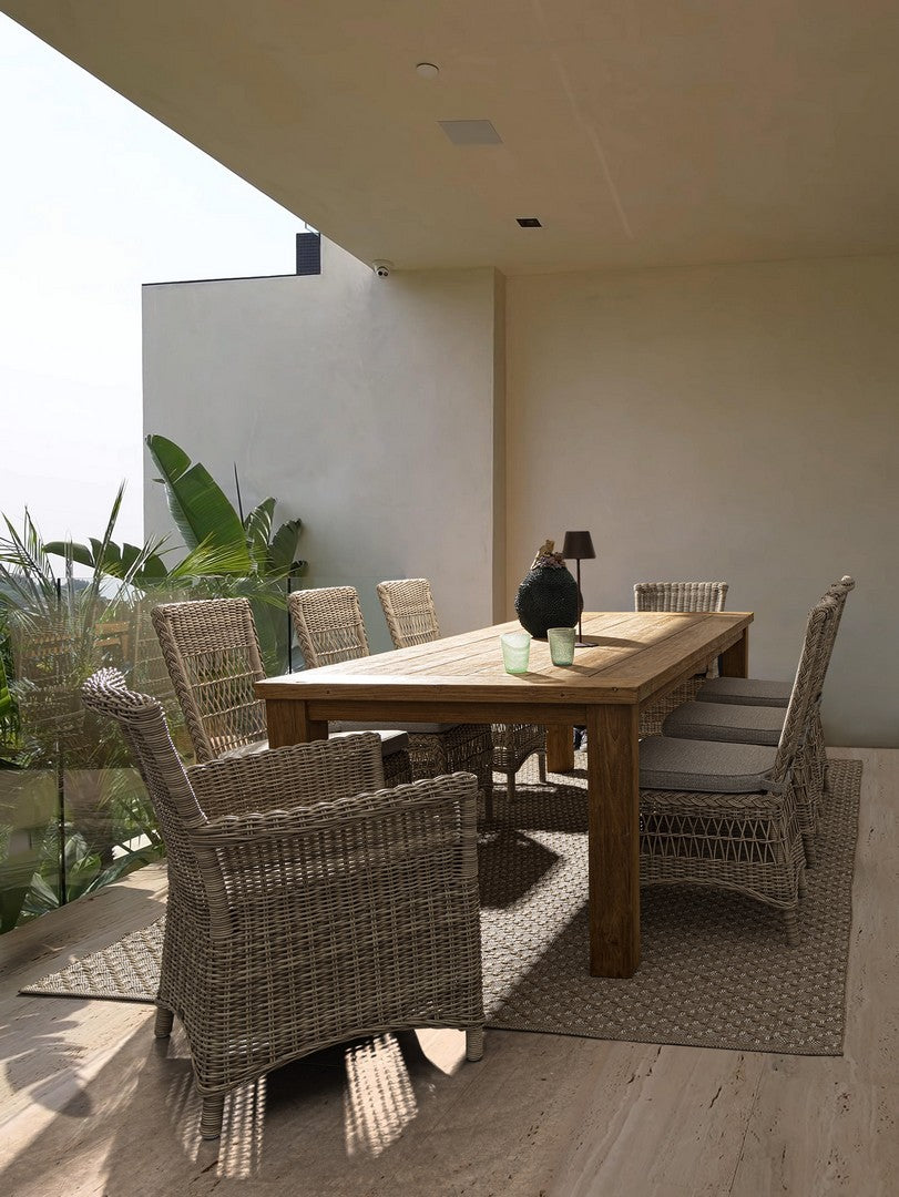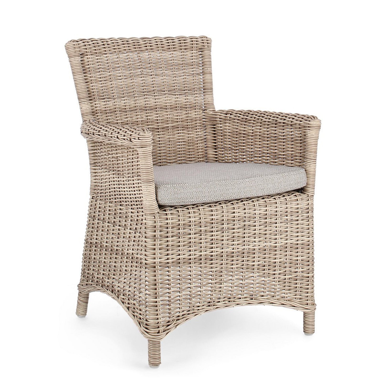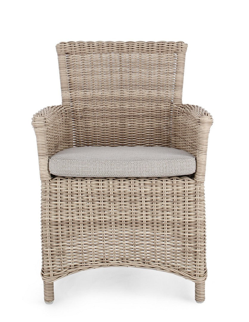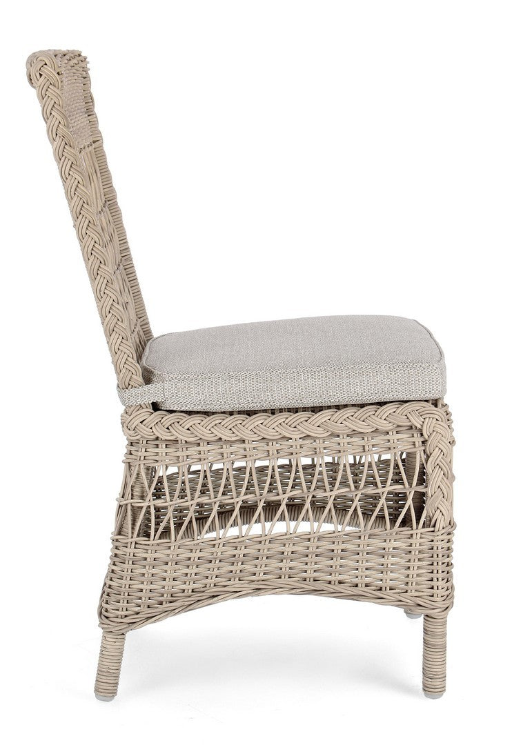 La chaise présente un tissage en fibre synthétique, qui lui confère un aspect naturel et une haute résistance aux agents atmosphériques. Ce matériau est également facile à nettoyer et nécessite peu d’entretien.
