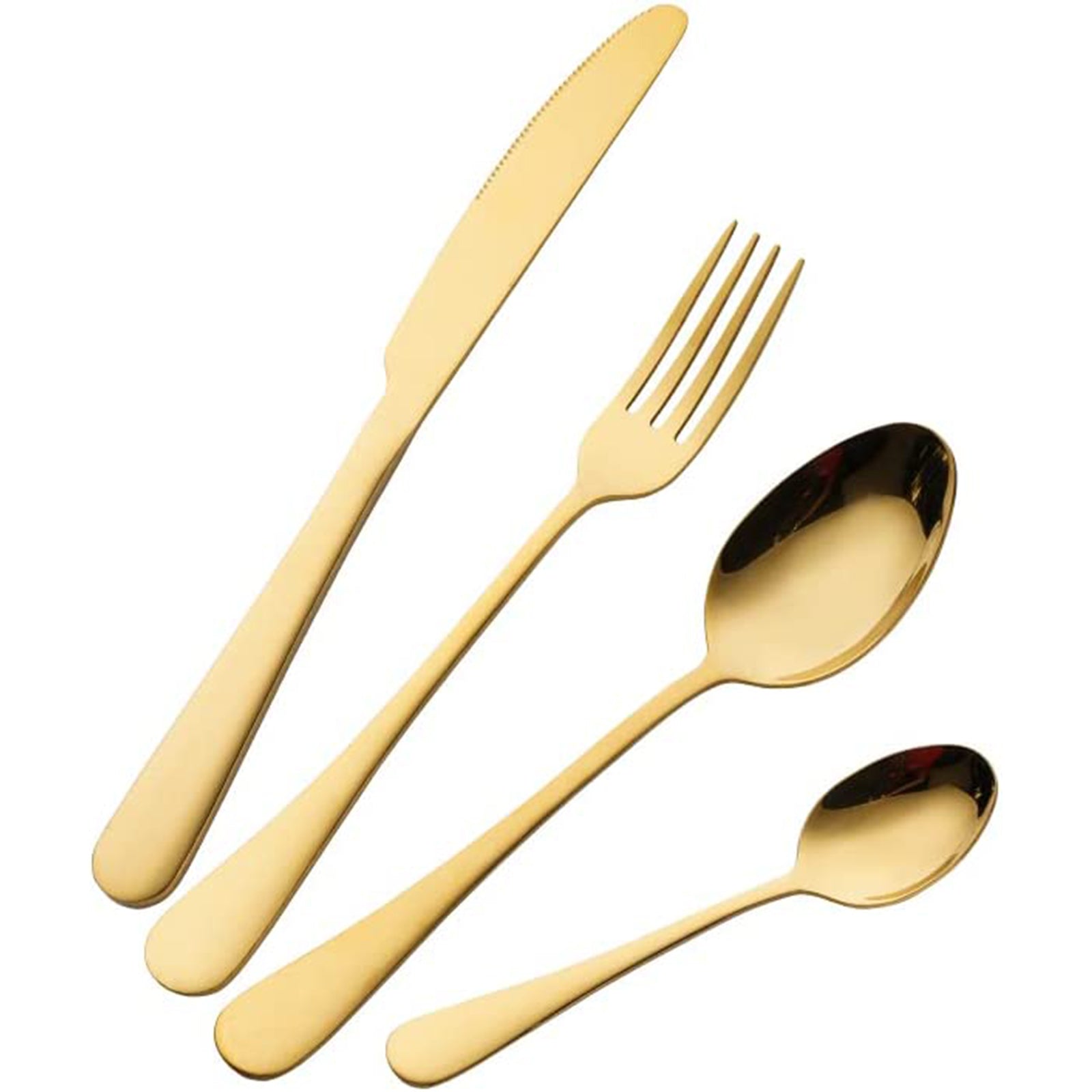Prix régulier €34,90 Prix réduit €23,90Le service de couverts en acier inoxydable doré de 24 pièces pour 6 personnes représente un choix élégant et sophistiqué pour enrichir la table lors d'occasions spéciales et de vacances.