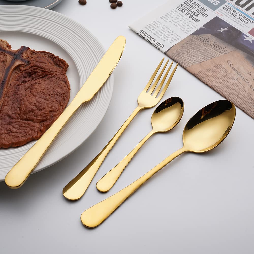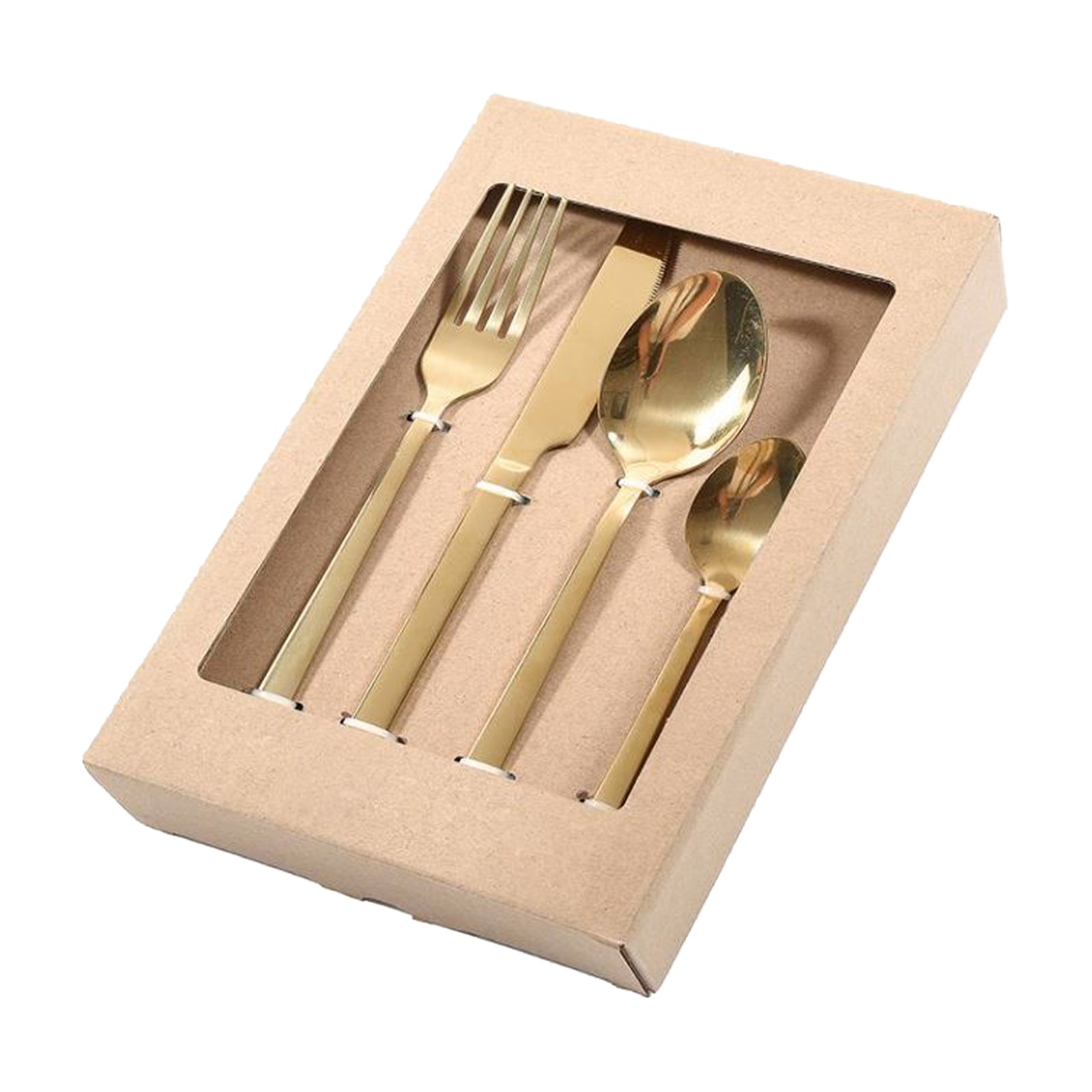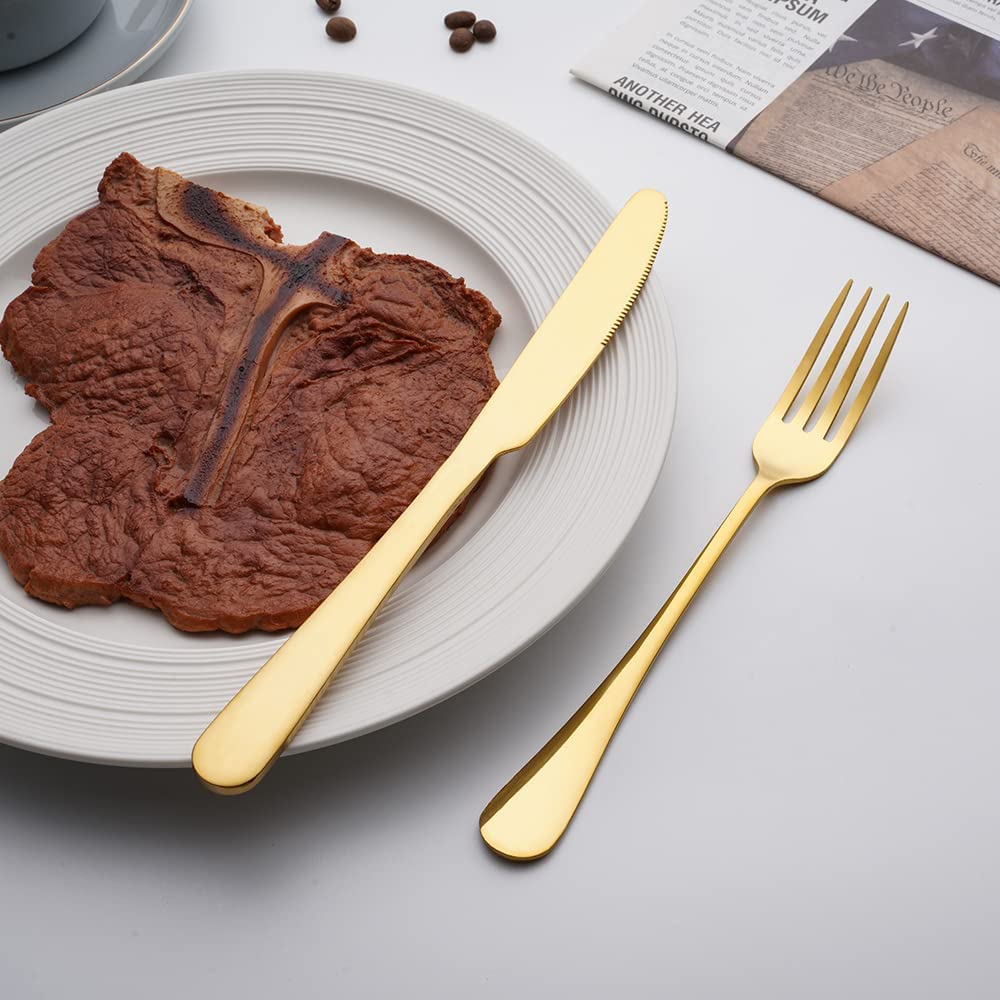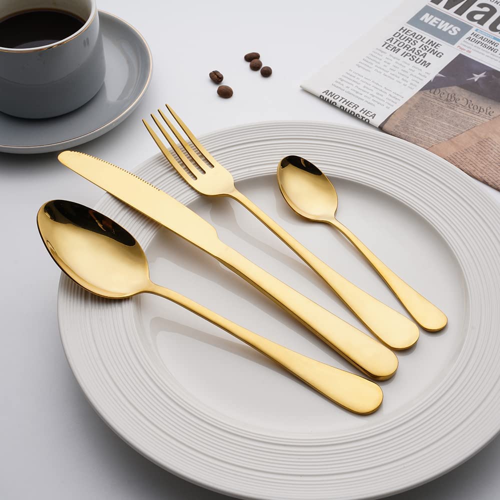 Les couverts sont plaqués or, ce qui leur confère un aspect lumineux et brillant qui ajoute une touche d'élégance à la table.