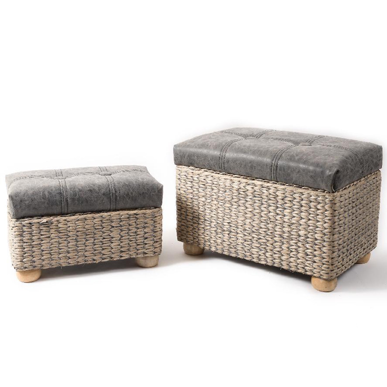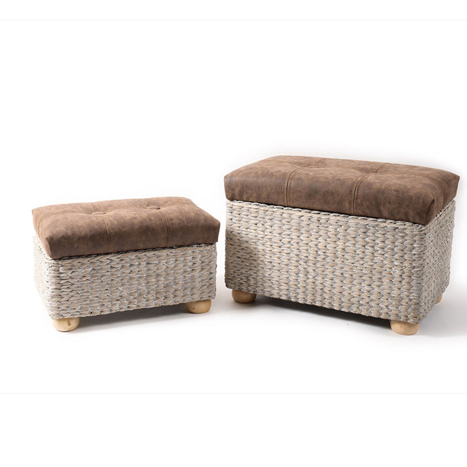 Ensemble de 2 poufs conteneurs rectangulaires avec sièges en éco-cuir, mobilier moderne