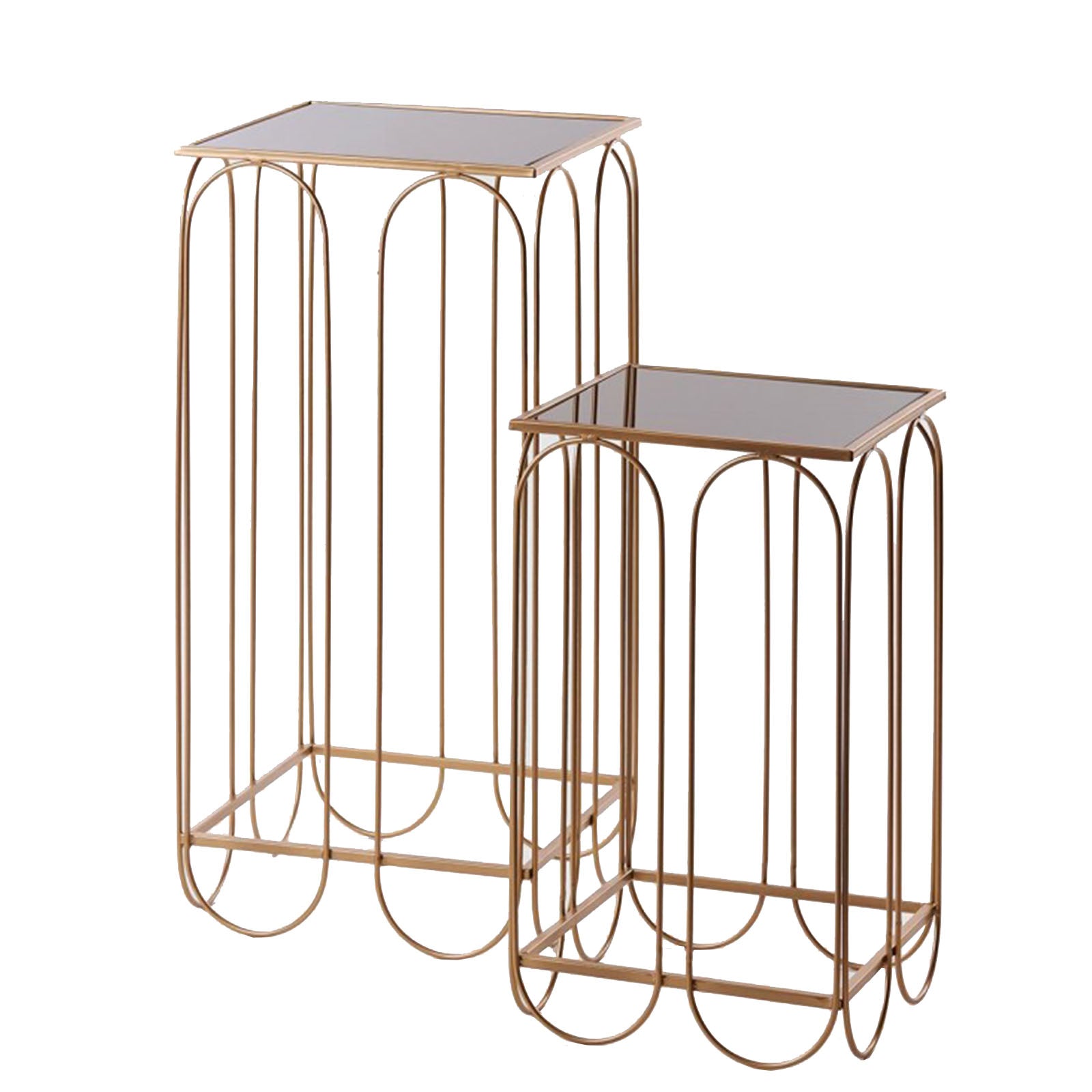 Lot de 2 tables basses carrées en métal et verre pour aménagement intérieur et extérieur