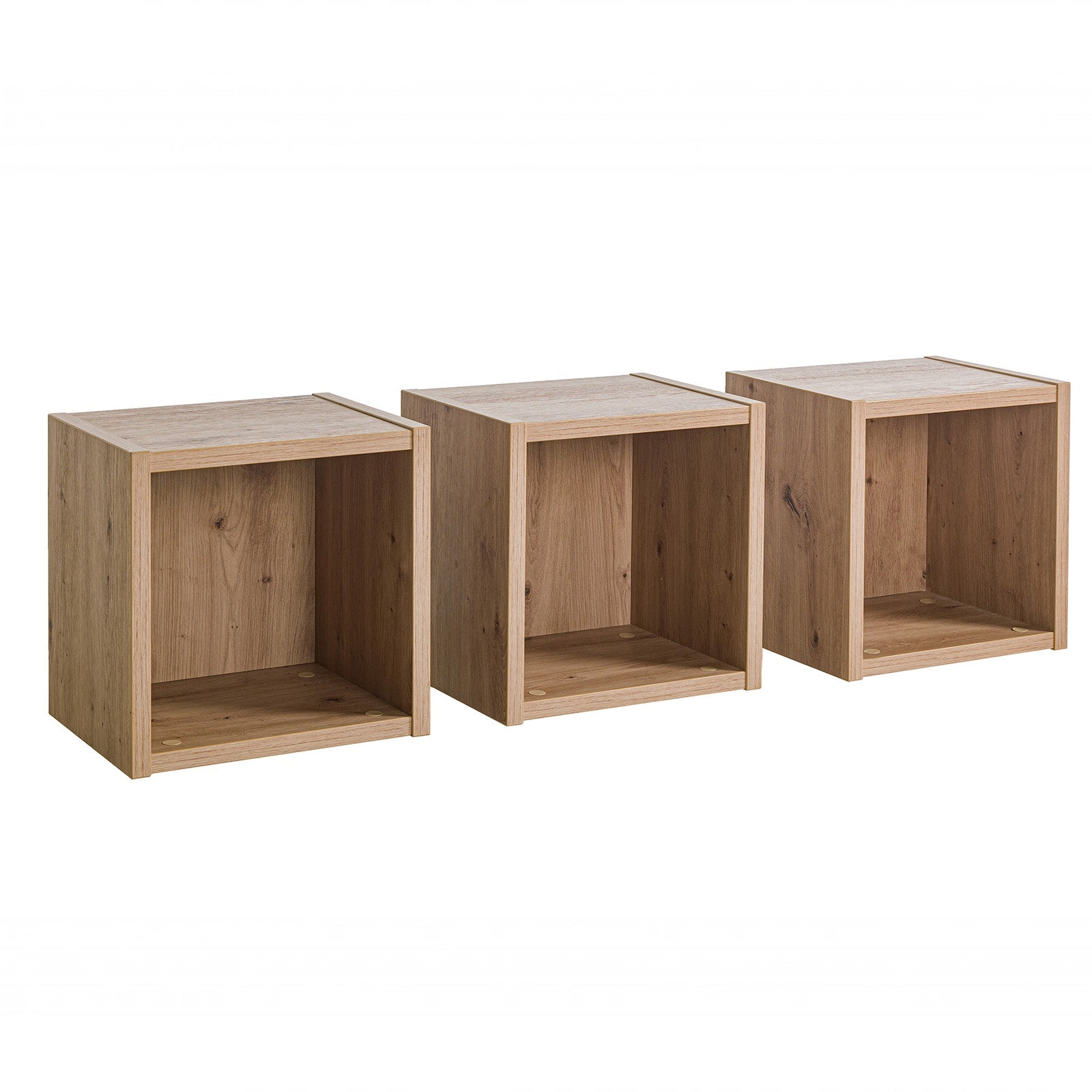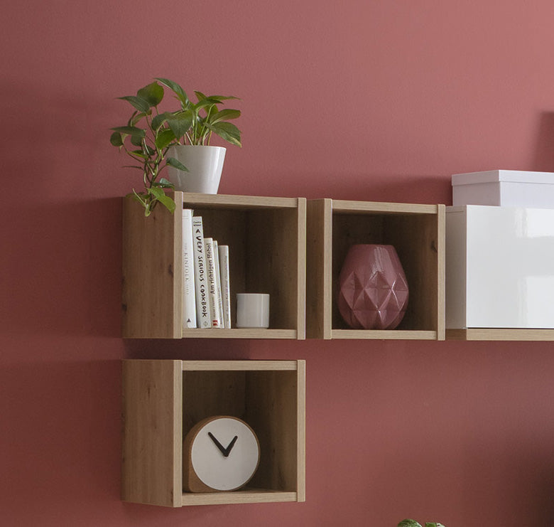 Ensemble de trois éléments muraux cubes de la ligne Vitruvie Couleur Chêne Artisan.