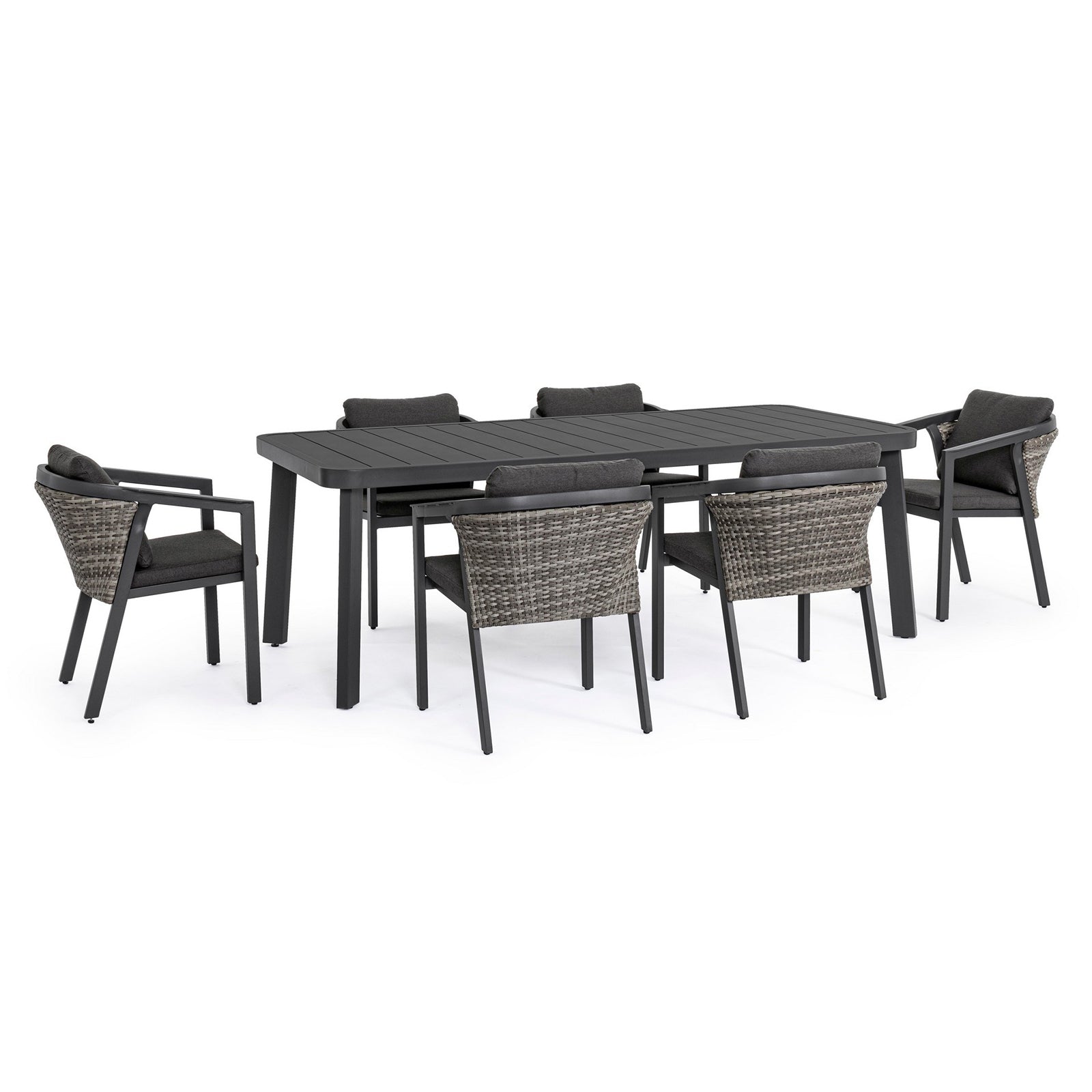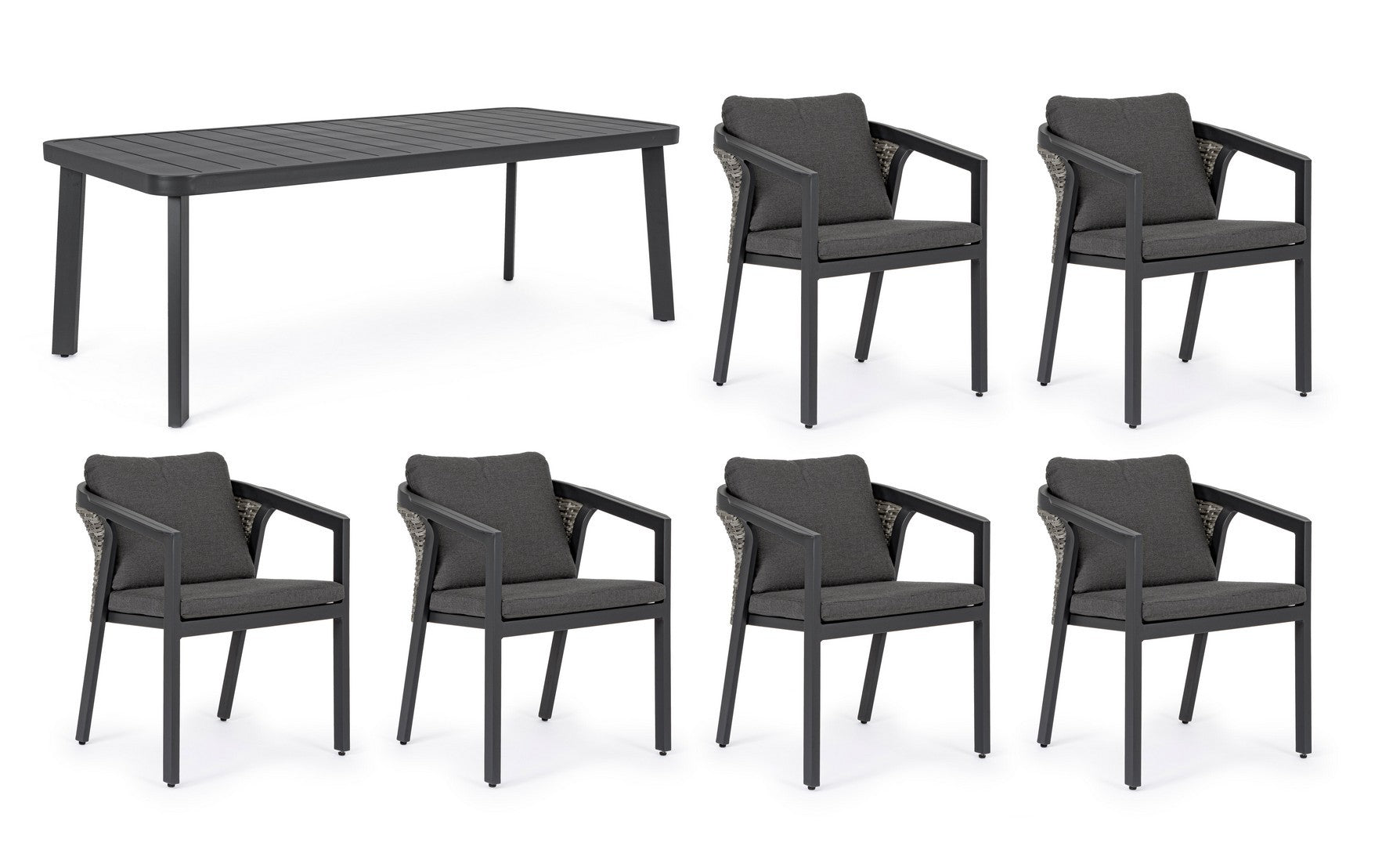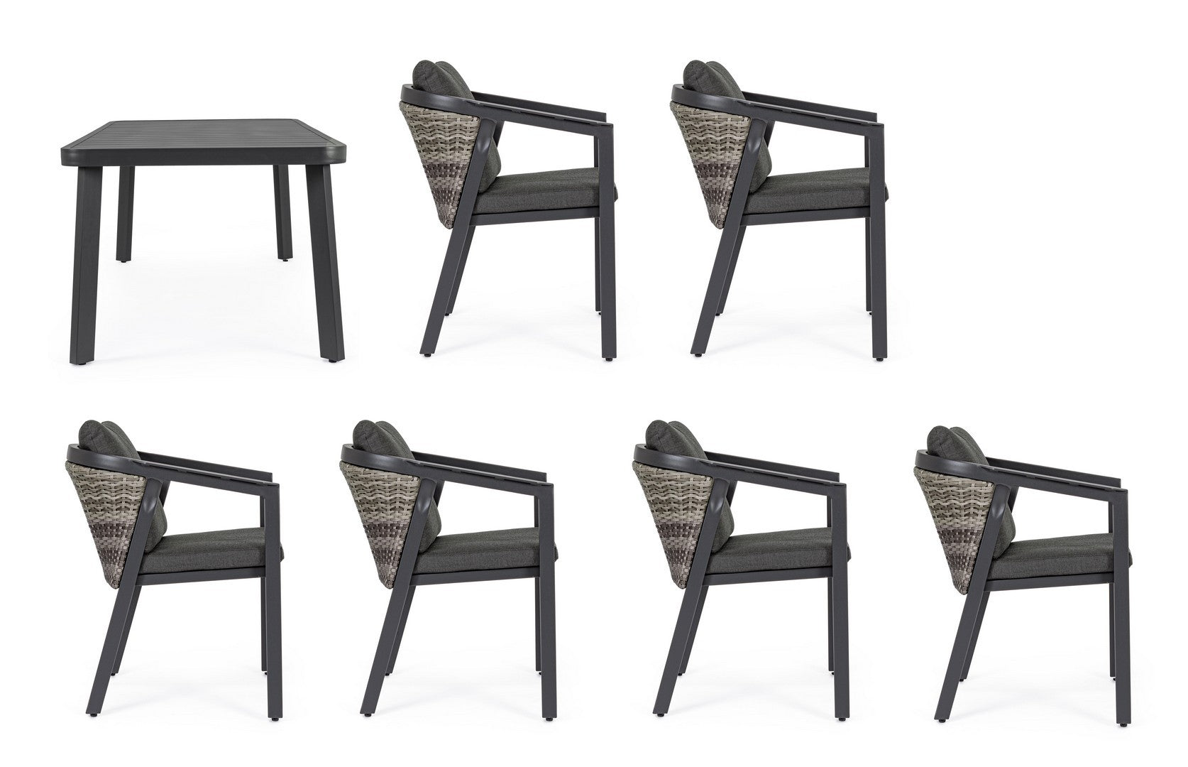 L'ensemble table et 6 chaises "Cordova" est parfait pour meubler les espaces extérieurs, comme les jardins ou les terrasses, de manière élégante et fonctionnelle. Grâce à sa structure en aluminium peint et à son assise en fibre synthétique, il est capable de résister aux agents atmosphériques et de conserver sa beauté dans le temps.
