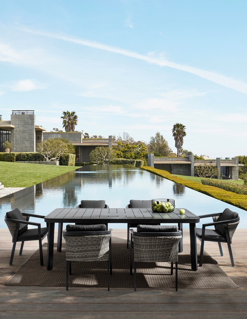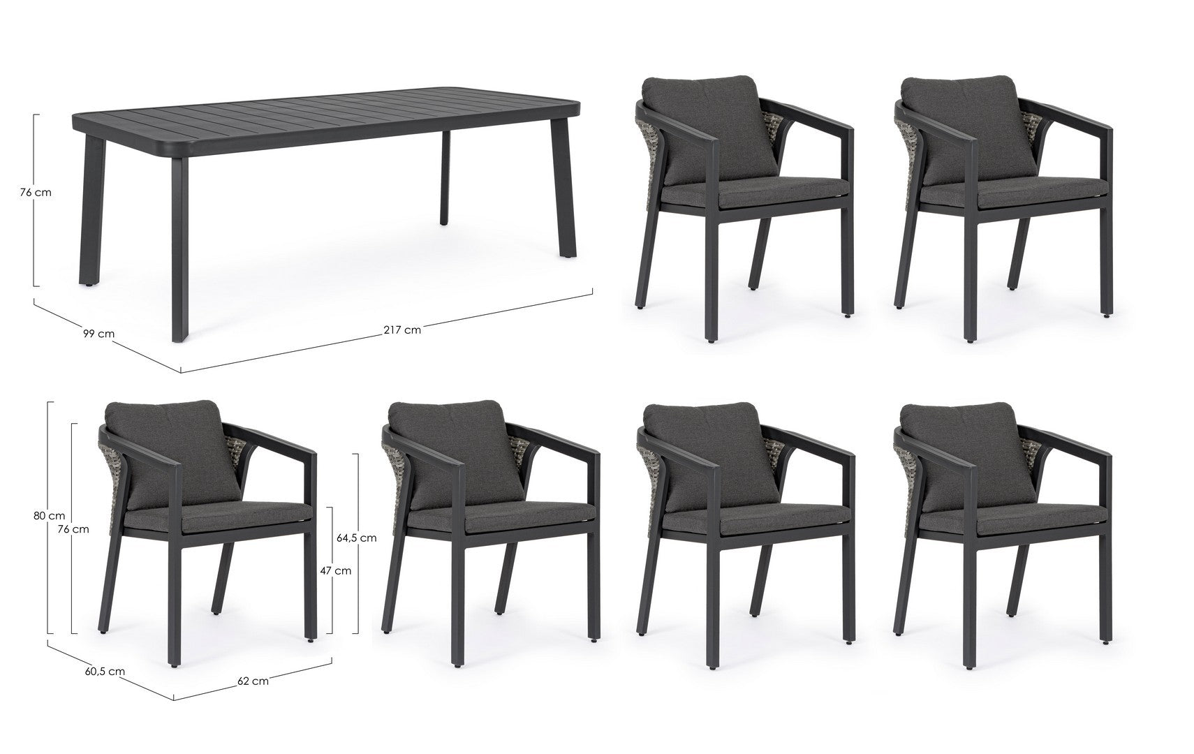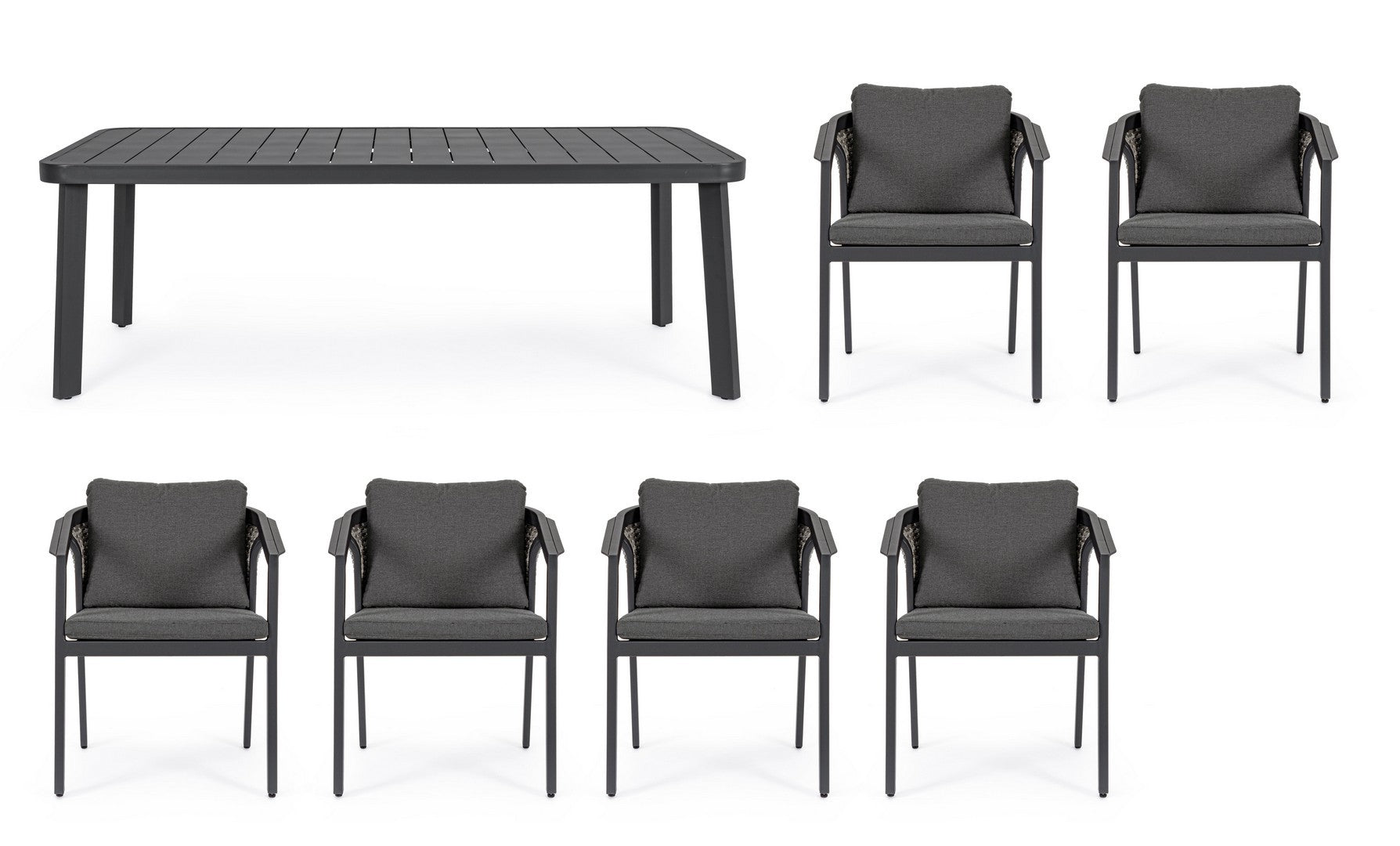 L'ensemble table et 6 chaises "Cordova" est parfait pour meubler les espaces extérieurs, comme les jardins ou les terrasses, de manière élégante et fonctionnelle. Grâce à sa structure en aluminium peint et à son assise en fibre synthétique, il est capable de résister aux agents atmosphériques et de conserver sa beauté dans le temps.