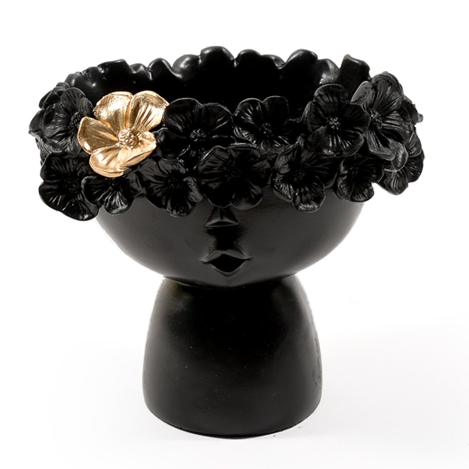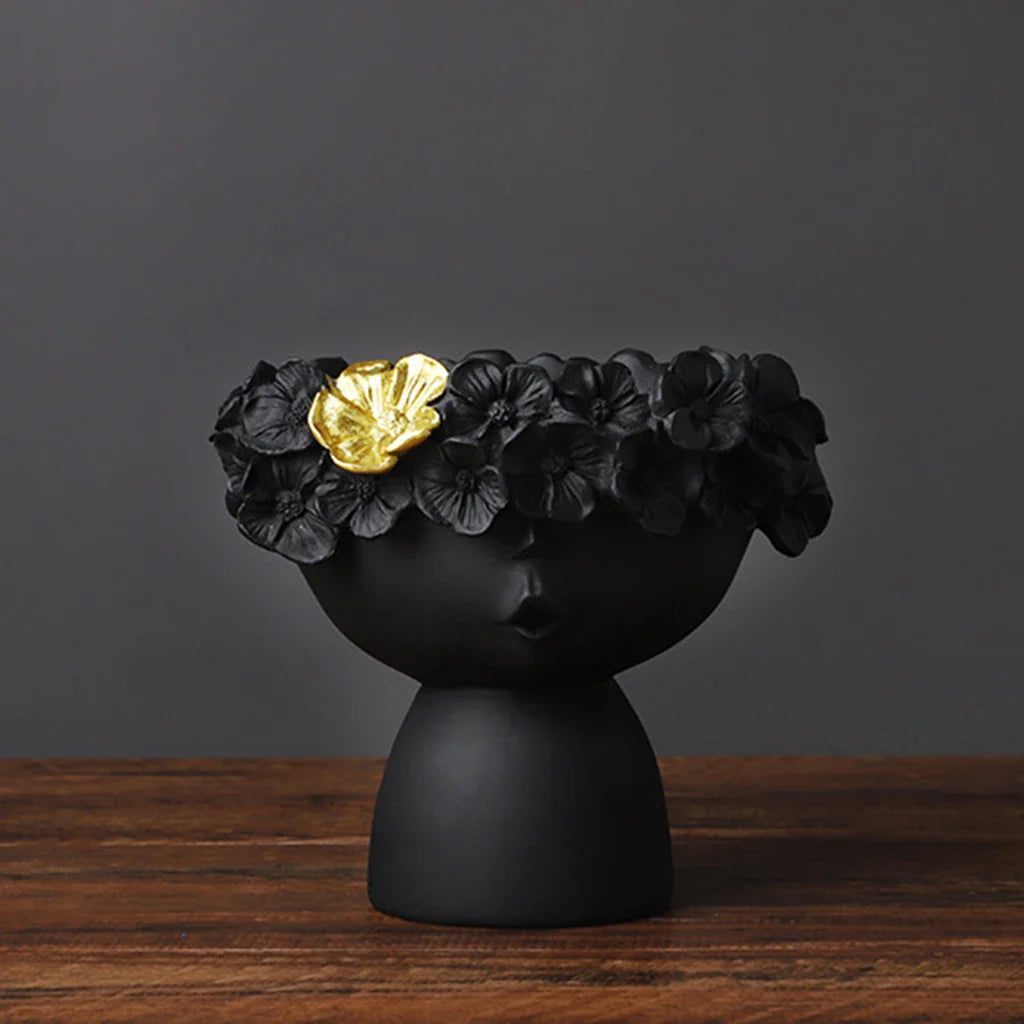 La statue a une hauteur de 13 cm et est de couleur noir et blanc avec des détails dorés qui la rendent très élégante et raffinée.