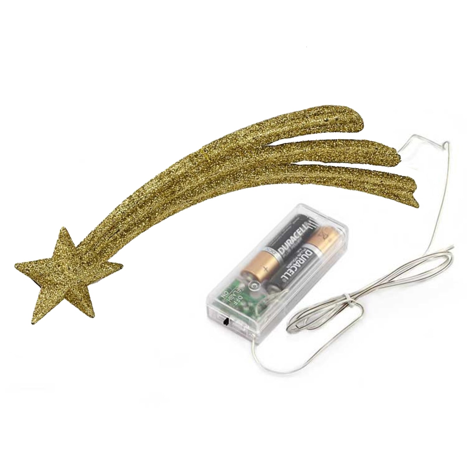 Étoile comète lumineuse à paillettes pour crèche à piles 23 cm