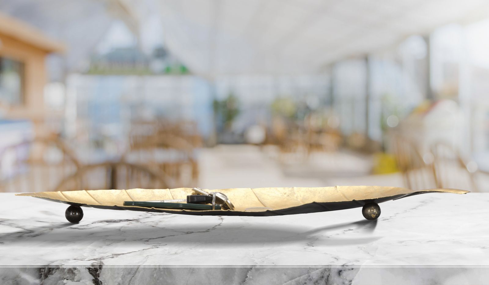Le vide-poche "feuilles longues" en métal doré pour intérieur est un accessoire d'ameublement élégant qui allie esthétique raffinée et fonctionnalité.