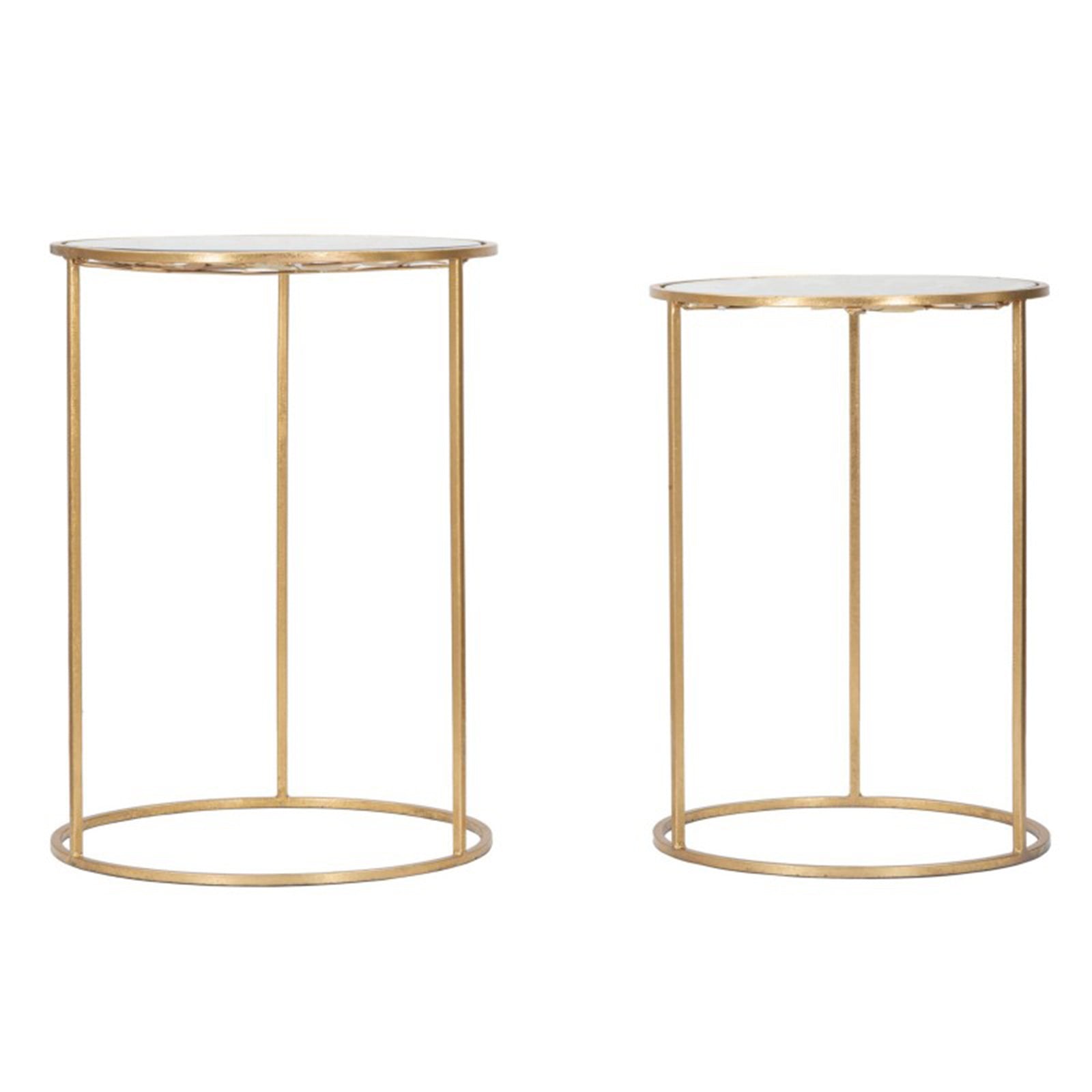 La structure des deux tables est en métal doré, leur conférant un aspect luxueux et contemporain.
