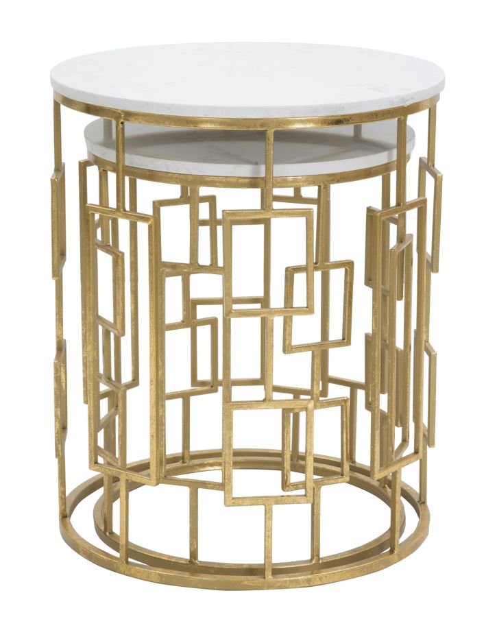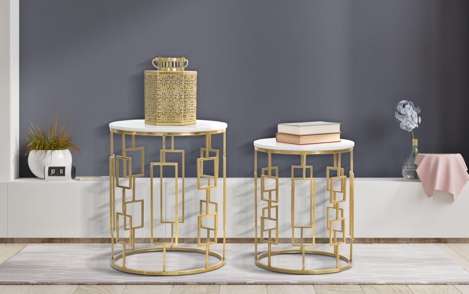 Chaque table basse de l'ensemble "Cube" présente une structure en fer de couleur dorée, qui donne une touche de luxe et de raffinement.