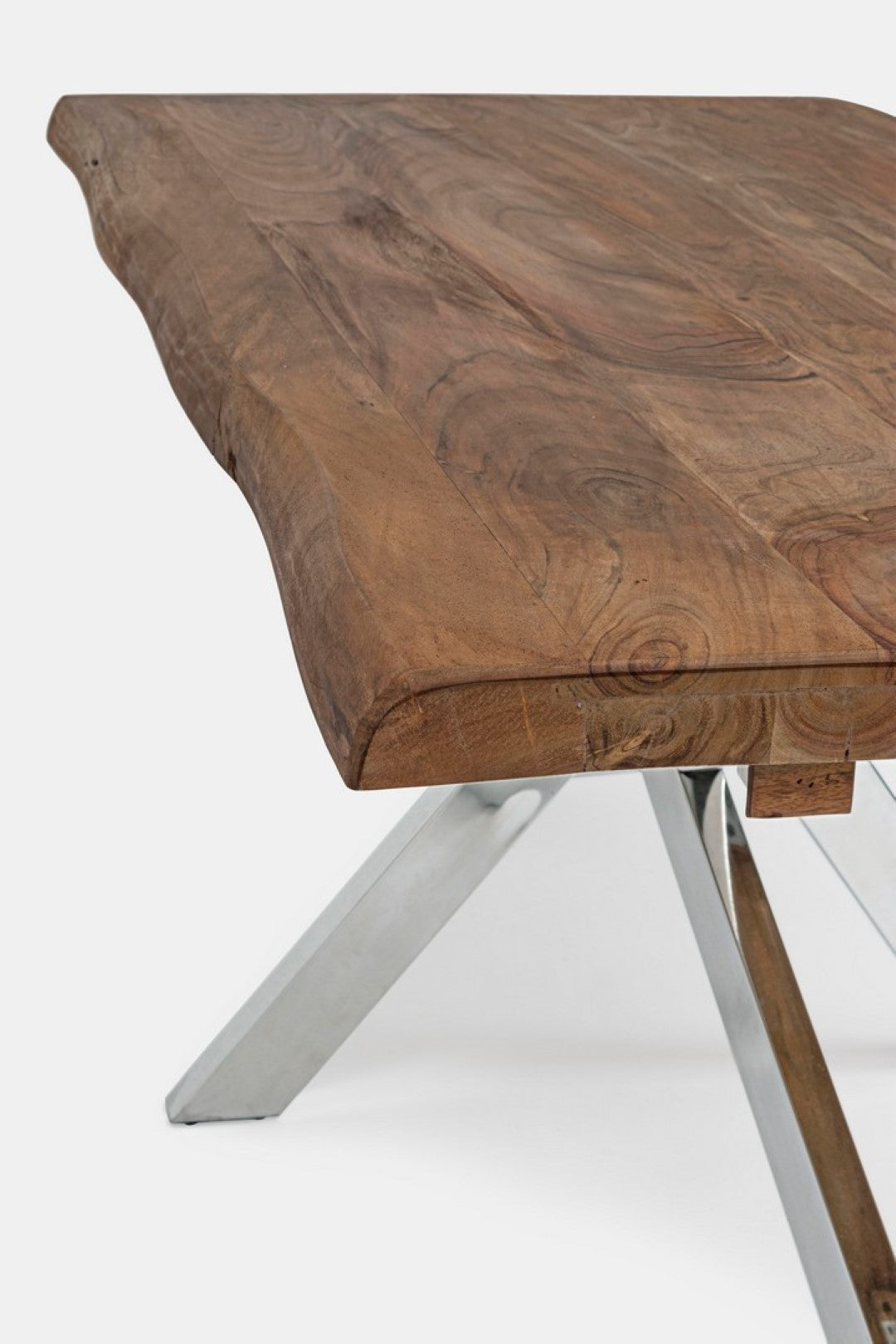 - Pieds en acier inoxydable, plateau en bois d'acacia (tronçons d'origine).