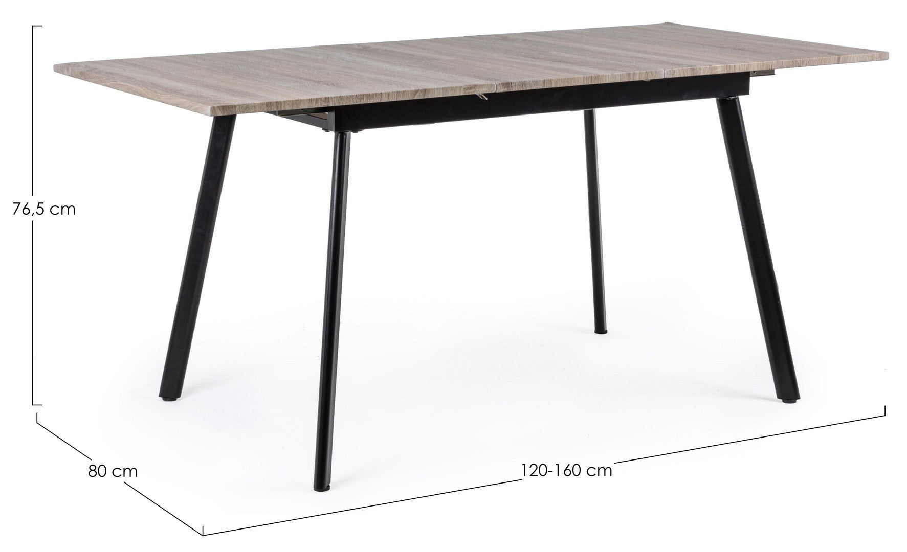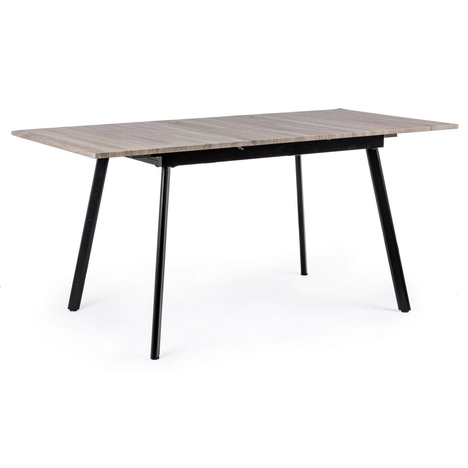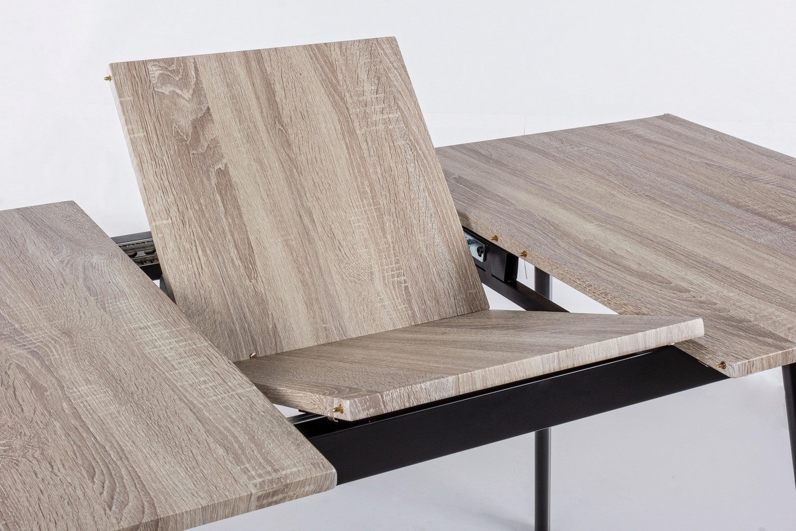 Table rectangulaire extensible Courtney avec pieds en acier, structure noire, plateau et rallonge en MDF