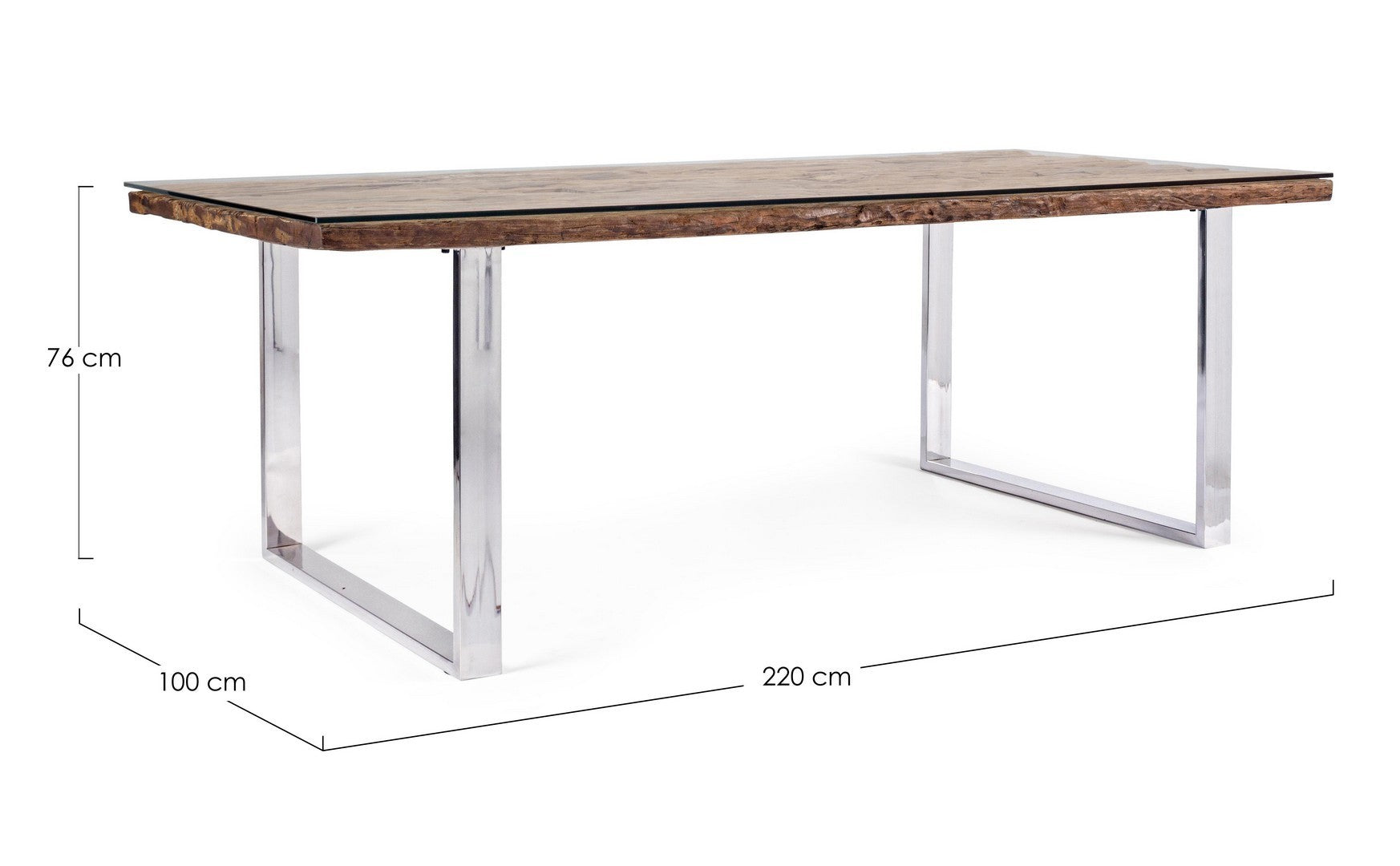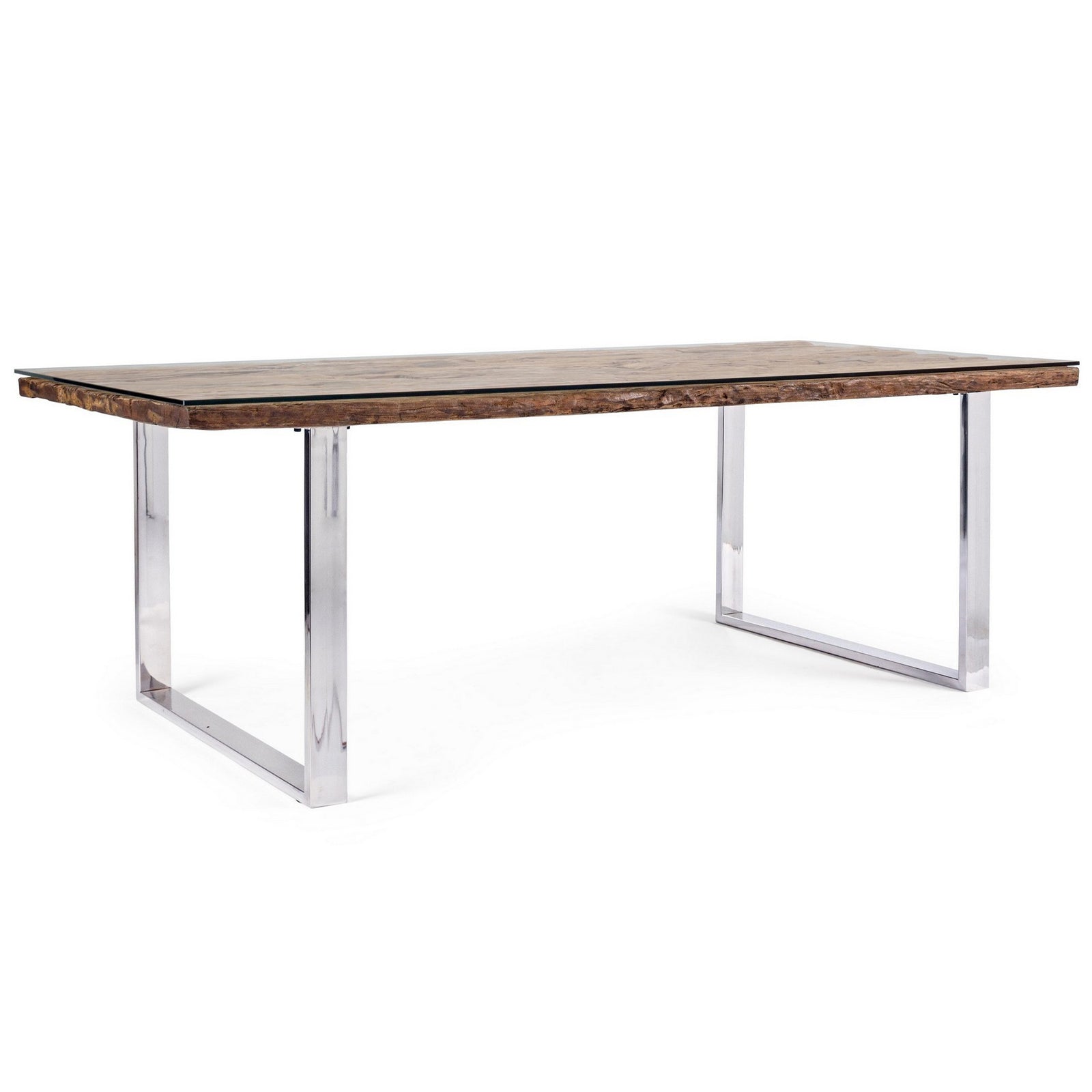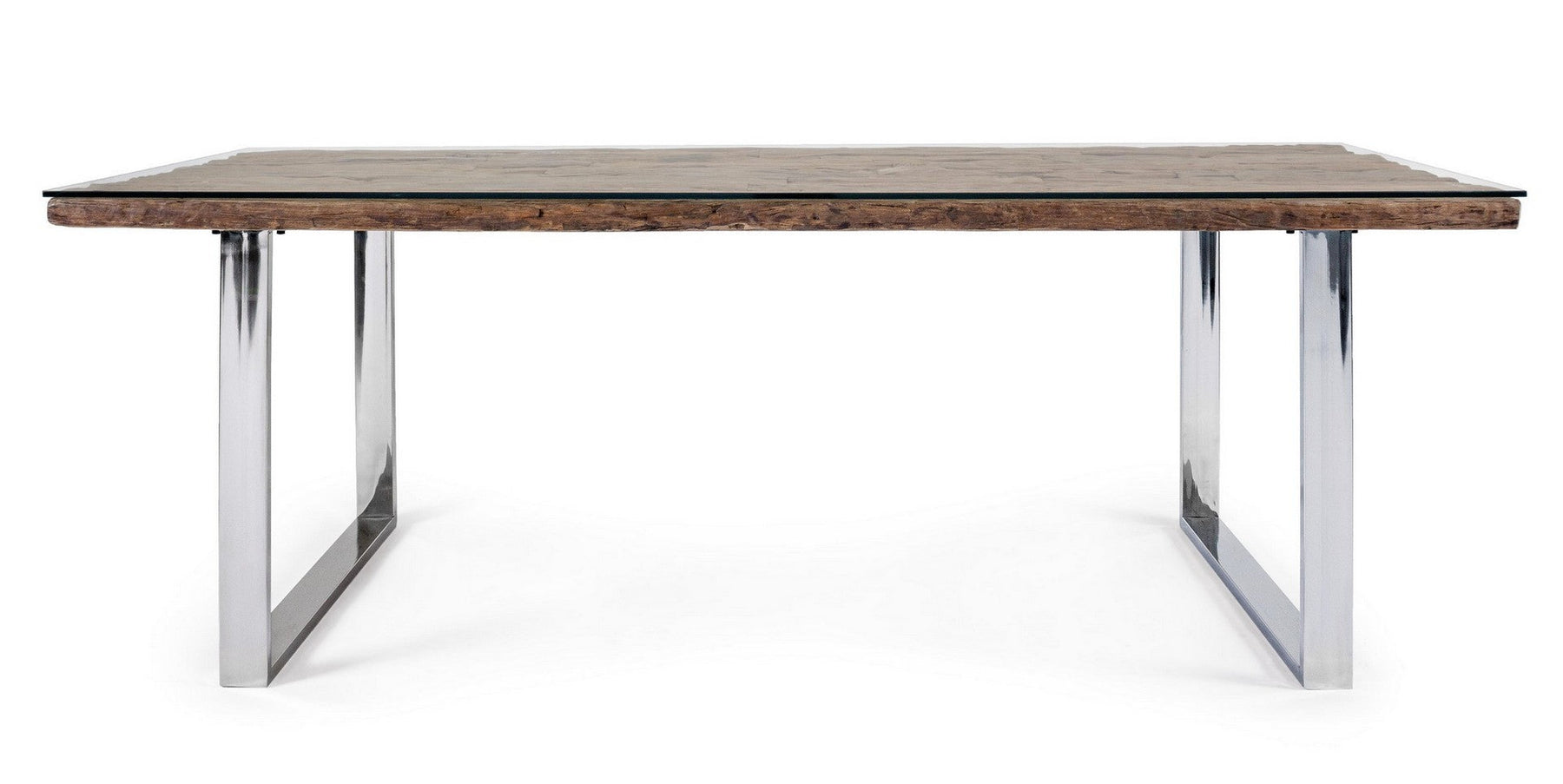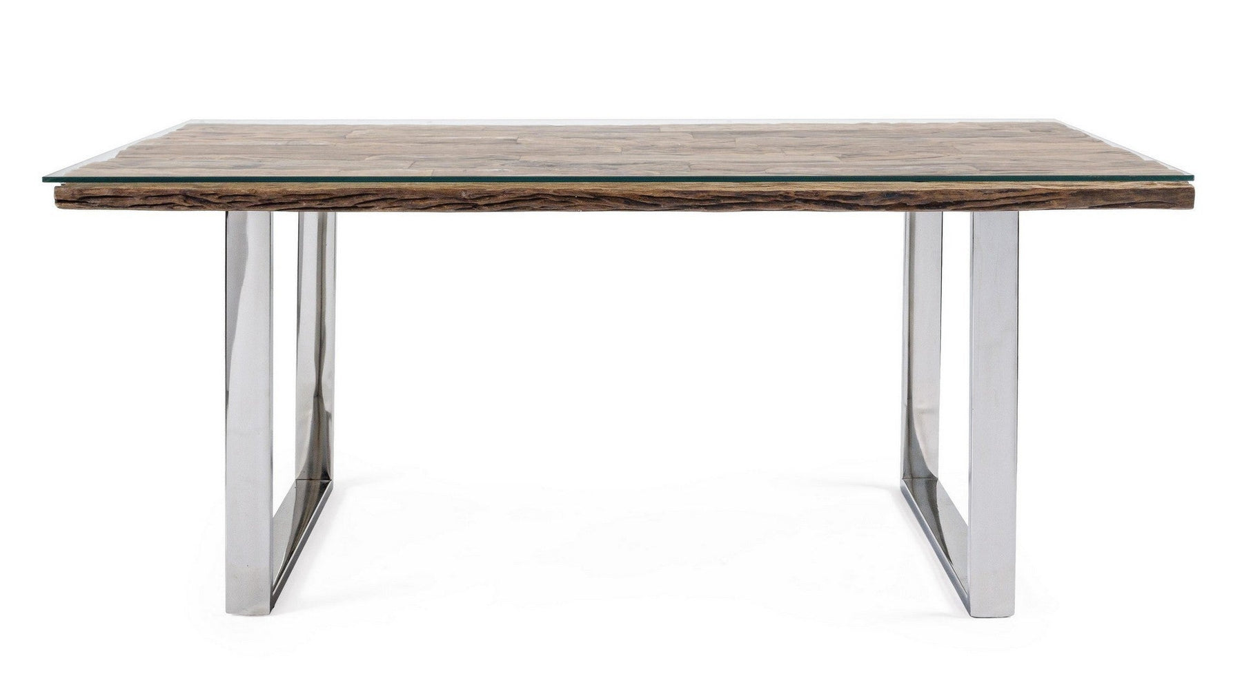 Le tableau C-V Stanton par Bizzotto est une table de conception équipé d'un dessus bois recyclé finition naturel , verre trempé, pieds en acier inoxydable.