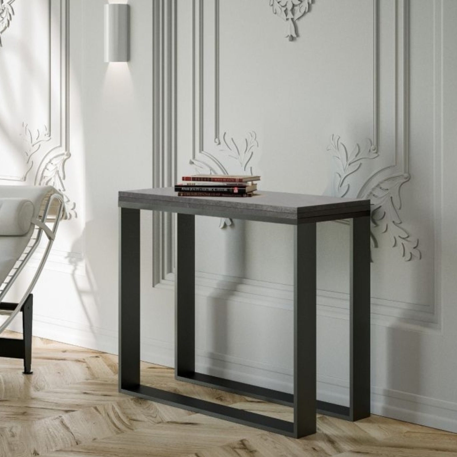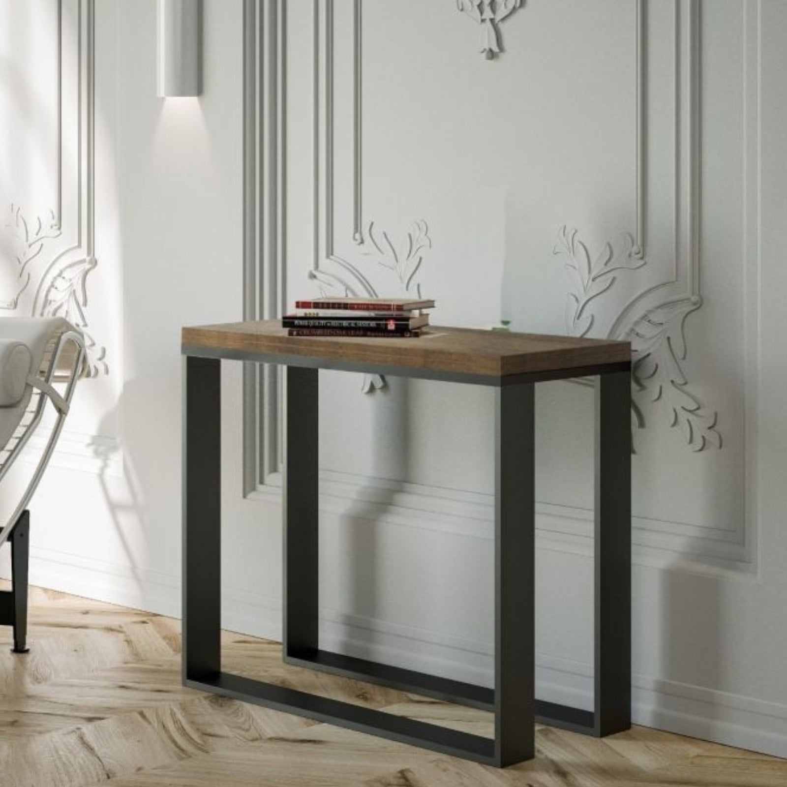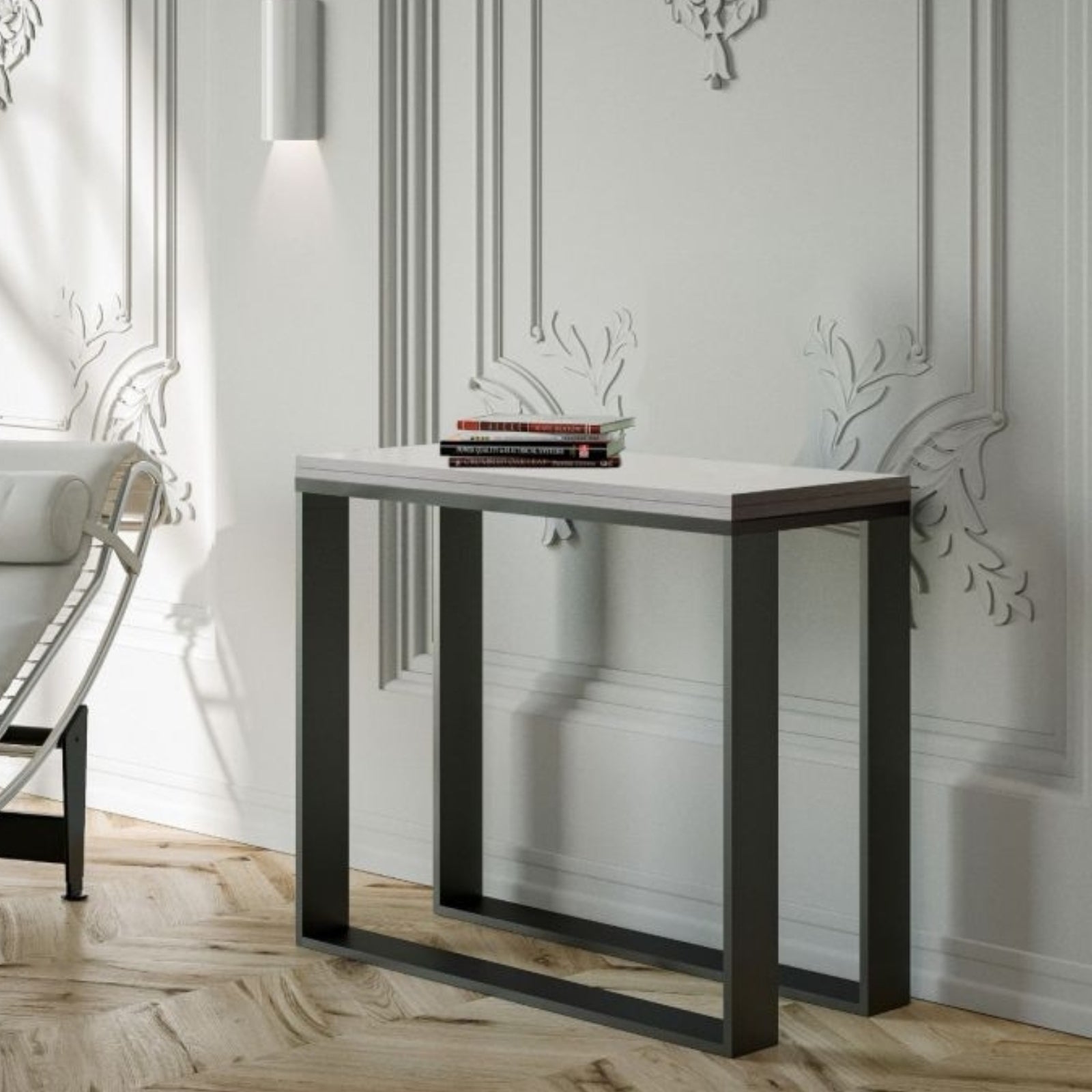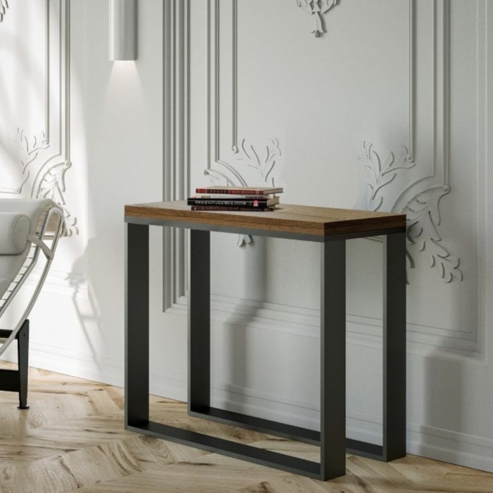 Lorsqu'elle n'est pas déployée, la table console "Trieste" peut être placée contre un mur ou utilisée comme console pour poser des objets décoratifs ou comme plan de travail supplémentaire. Cependant, lorsqu'il est nécessaire d'accueillir plus de personnes à table, le mécanisme d'extension permet de transformer la console en une table à manger plus grande et plus accueillante.