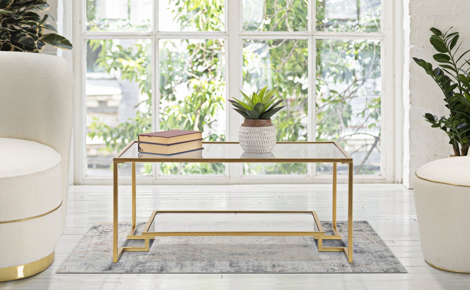 Table basse "Level" avec structure en métal et étagère en verre pour intérieur