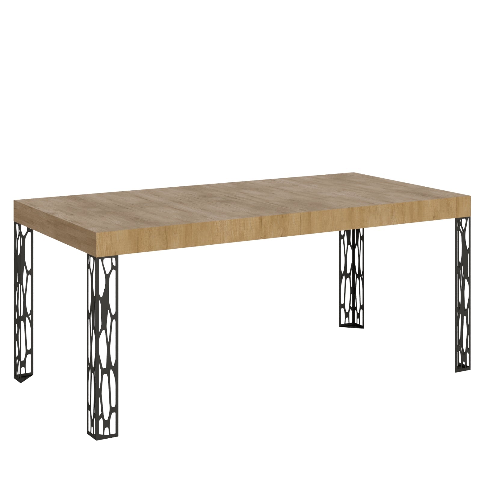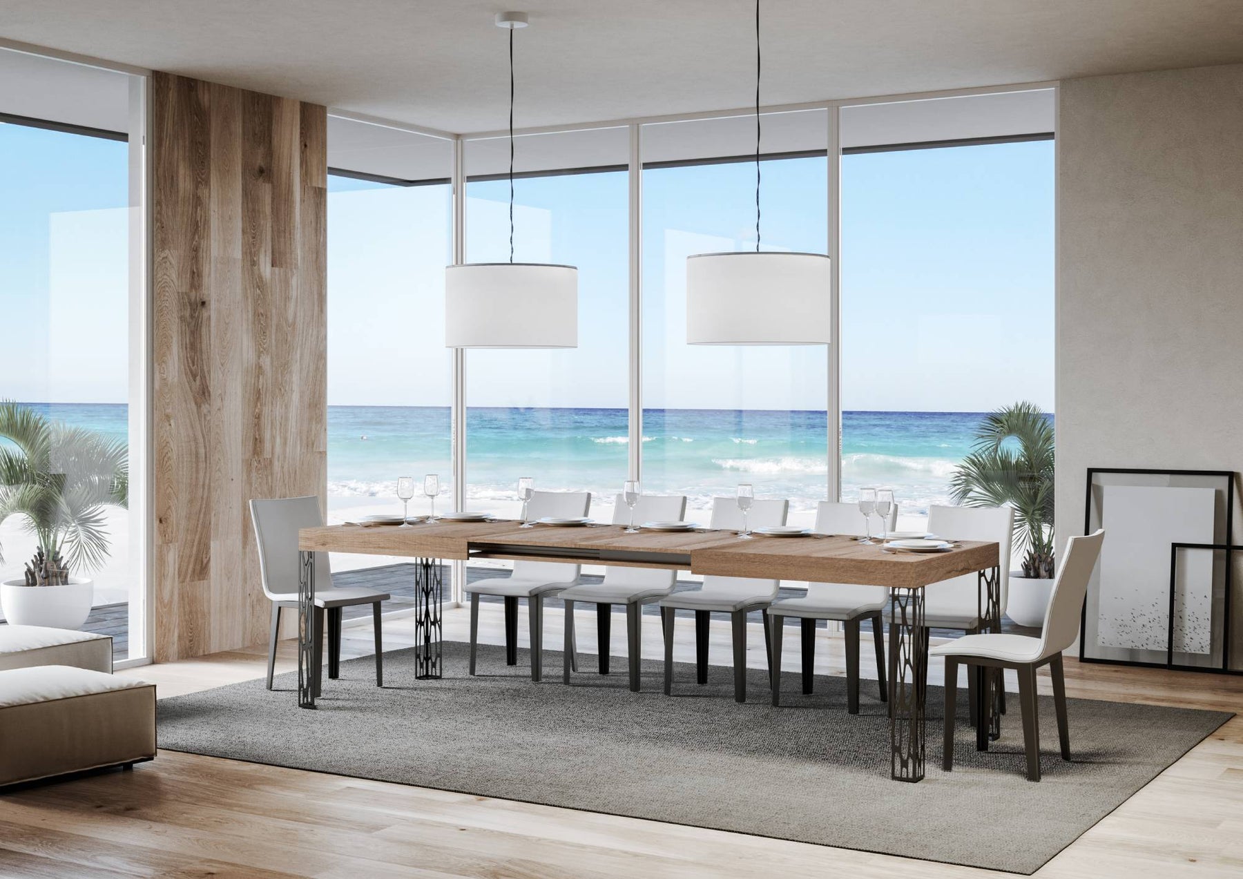 L'extension de la table se fait de manière simple et intuitive : il suffit d'ouvrir la partie centrale de la table en extrayant les sections supplémentaires, qui peuvent être fixées de manière stable pour créer une plus grande surface.