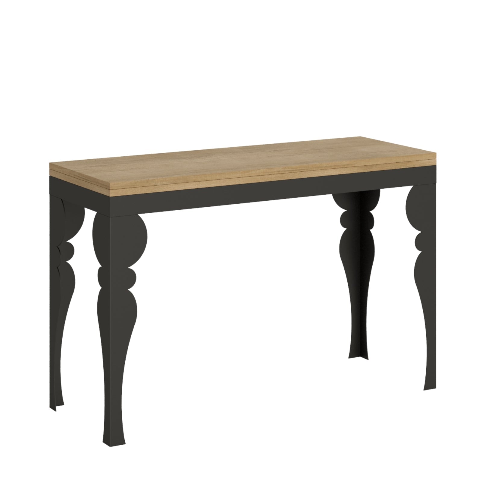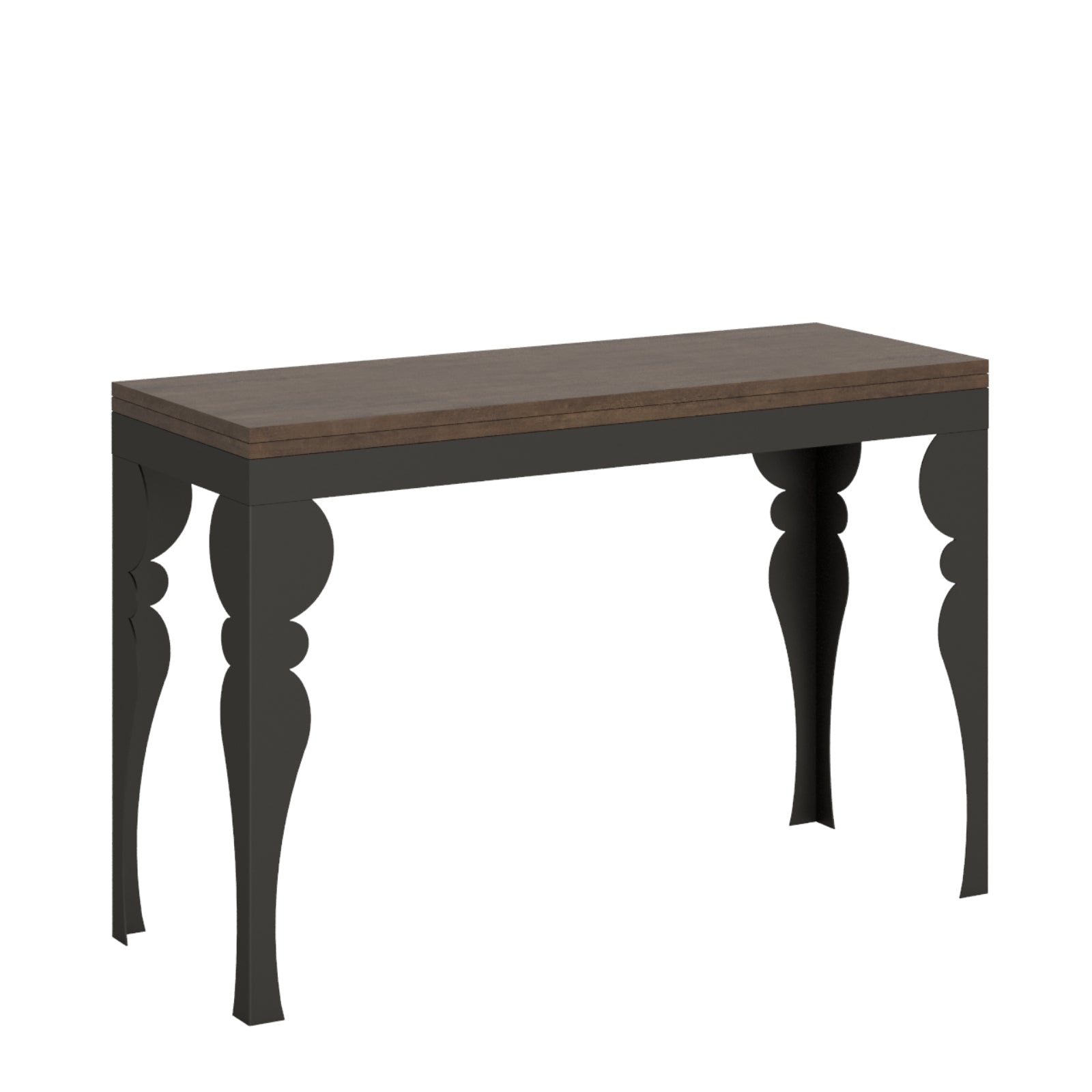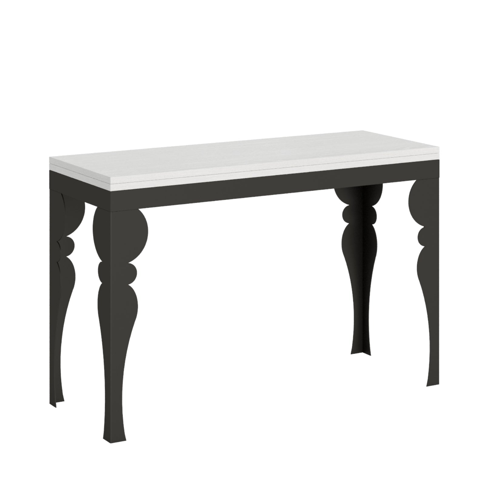 Lorsqu'elle n'est pas déployée, la table "Pistoia" peut être placée contre un mur pour y déposer des objets de décoration ou comme plan de travail supplémentaire.