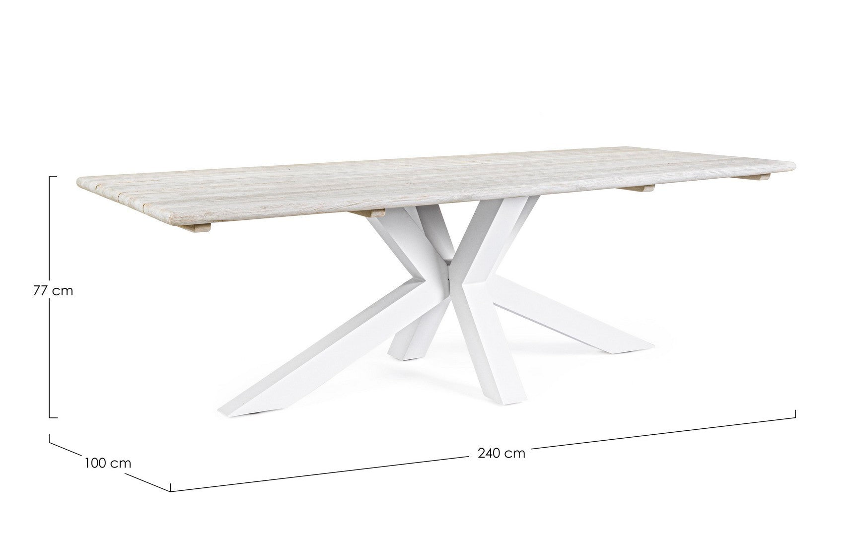 Les pieds de la table sont en aluminium thermolaqué (polyester), ce qui les rend résistants aux intempéries. Les vis sont en acier galvanisé, ce qui garantit une plus grande résistance à la corrosion. De plus, la table est dotée de pieds réglables pour une stabilité accrue sur des surfaces inégales.