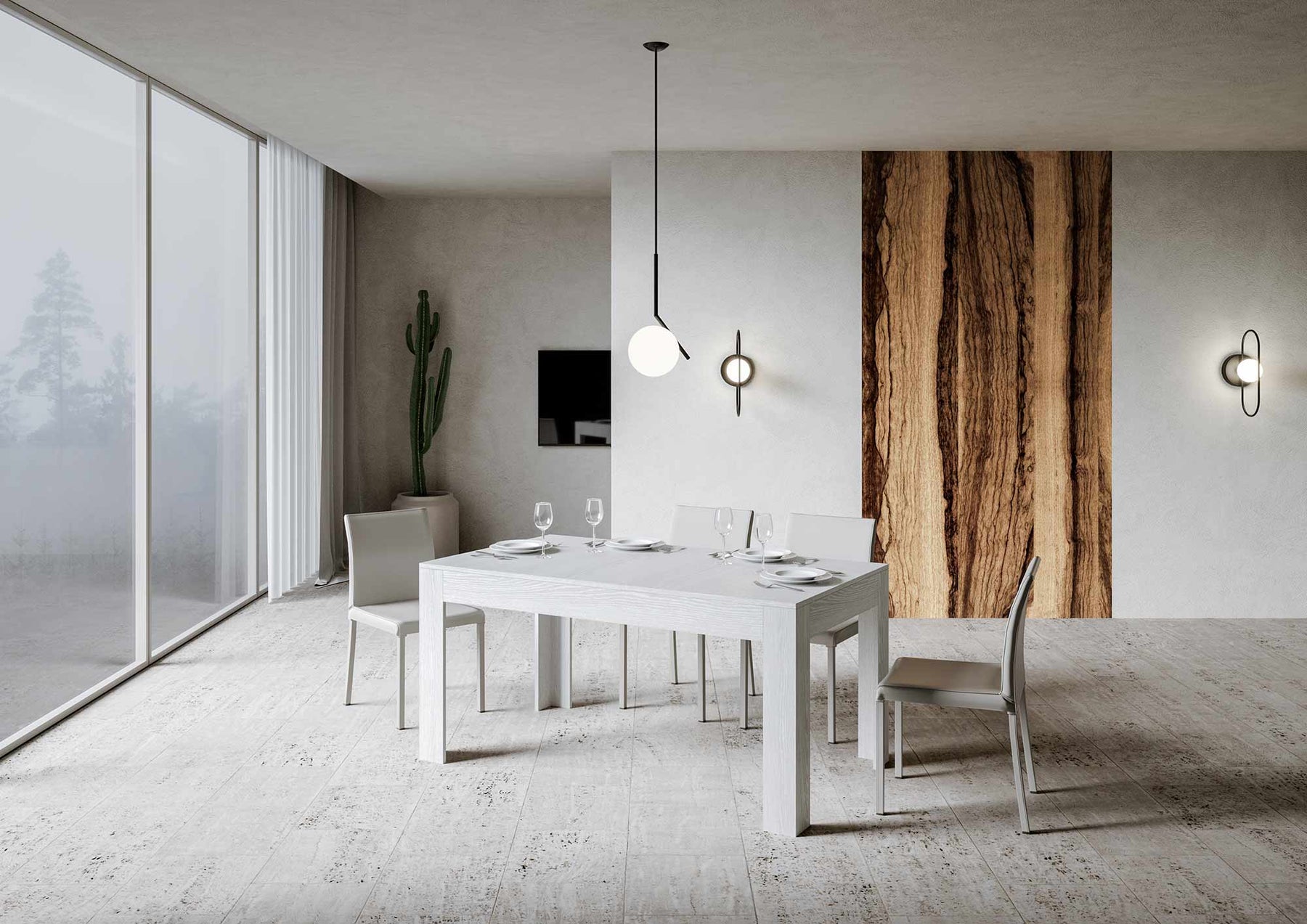 Lorsqu'elle n'est pas déployée, la table "Viterbo" peut être placée contre un mur pour y déposer des objets de décoration ou comme plan de travail supplémentaire.