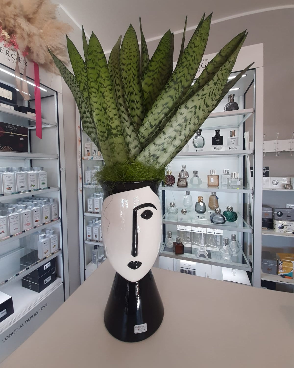 Le dessus peut être agrémenté de plantes grasses ou de fleurs fraîches qui deviendront la chevelure et l'effet sera garanti.