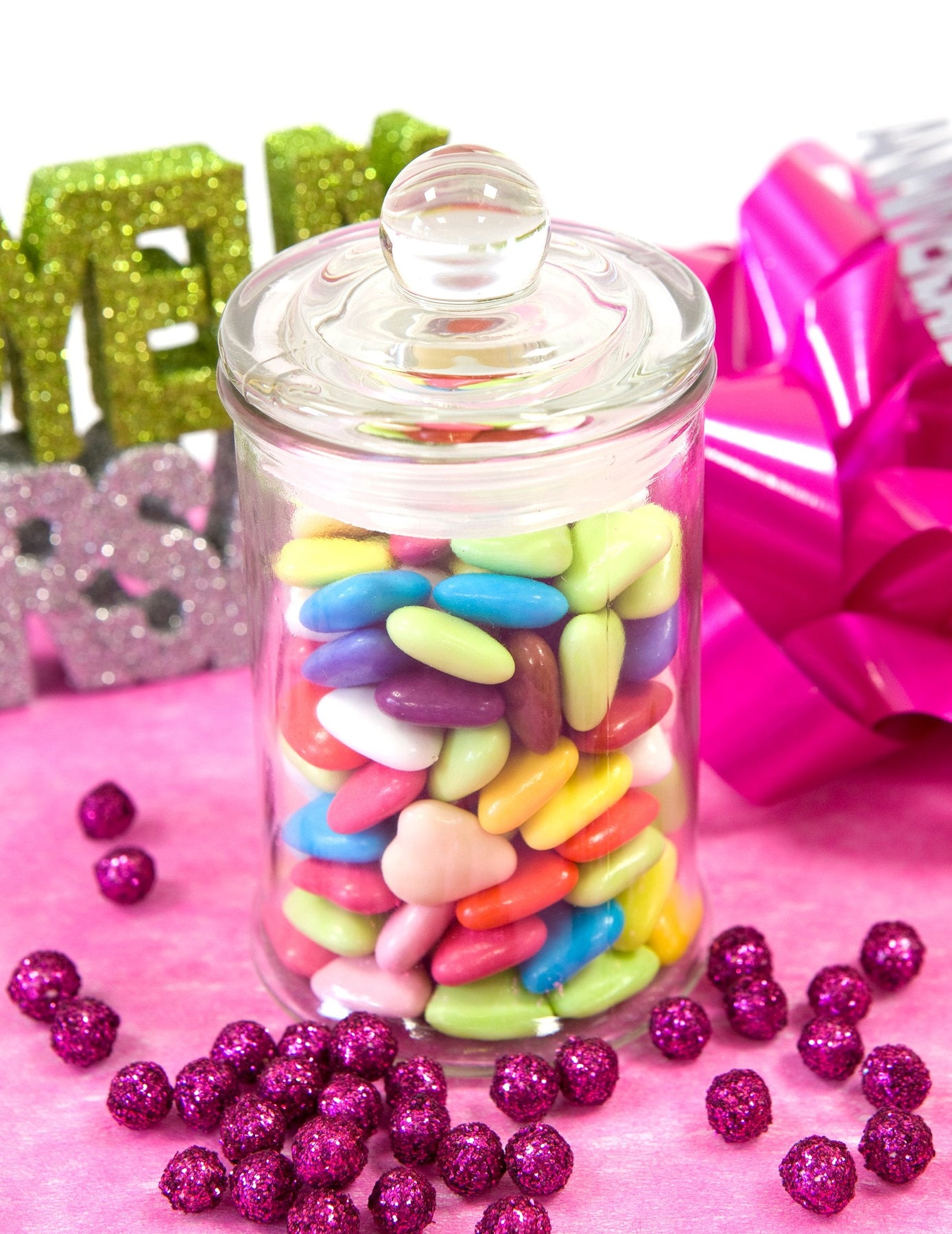 Prix régulier €8,90 Prix réduit €7,90Le pot en verre transparent avec couvercle est un récipient élégant de forme traditionnelle et haute, équipé d'un bouton sur le couvercle qui facilite l'ouverture.