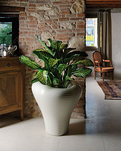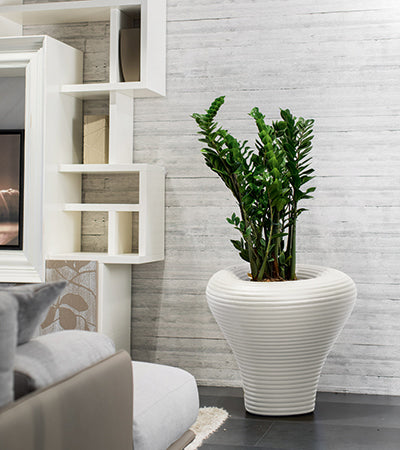 Le polyéthylène, à la fois léger et robuste, garantit que le vase "Tambo" est facile à déplacer et résistant aux chocs, au gel et à l'exposition au soleil.