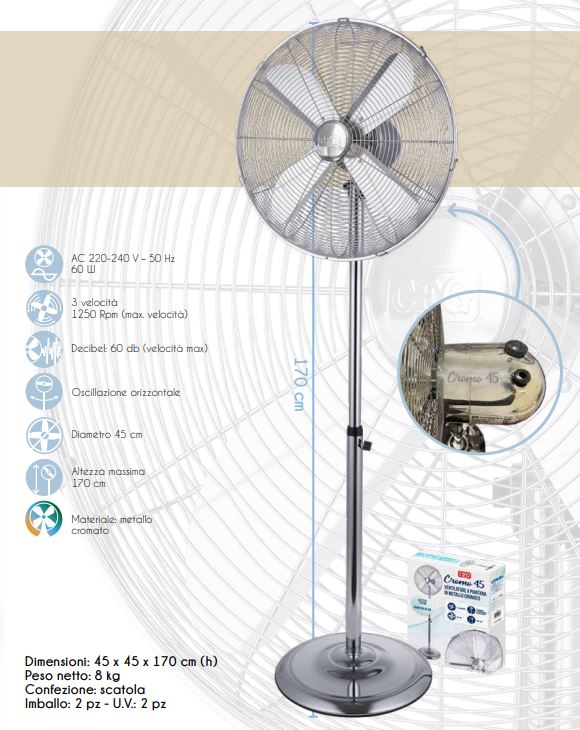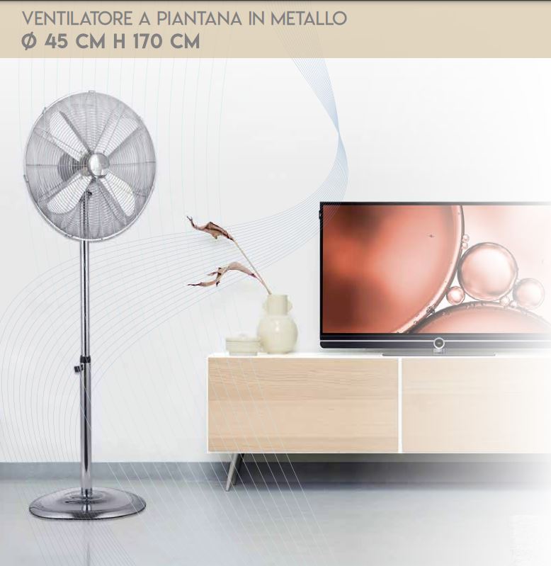 Ventilateur sur pied "Cromo", 3 vitesses, pale Ø 45 cm, hauteur réglable h 170 cm