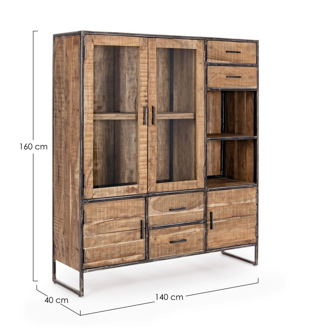 Prix régulier €2.499,90 Prix réduit €1.624,90La vitrine "Elmer" est un meuble d'intérieur caractérisé par une structure en bois d'acacia et acier.